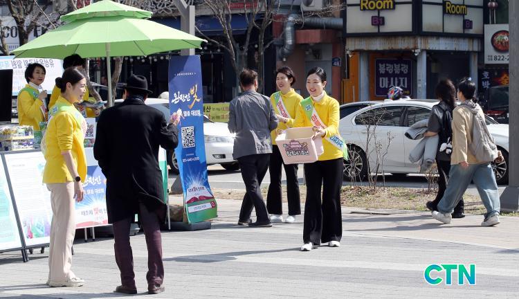 2025年3月21日,新天地大田教會在大田市儒城溫泉十字路口舉行創立41週年宣傳活動。[圖片提供:新天地大田教會]