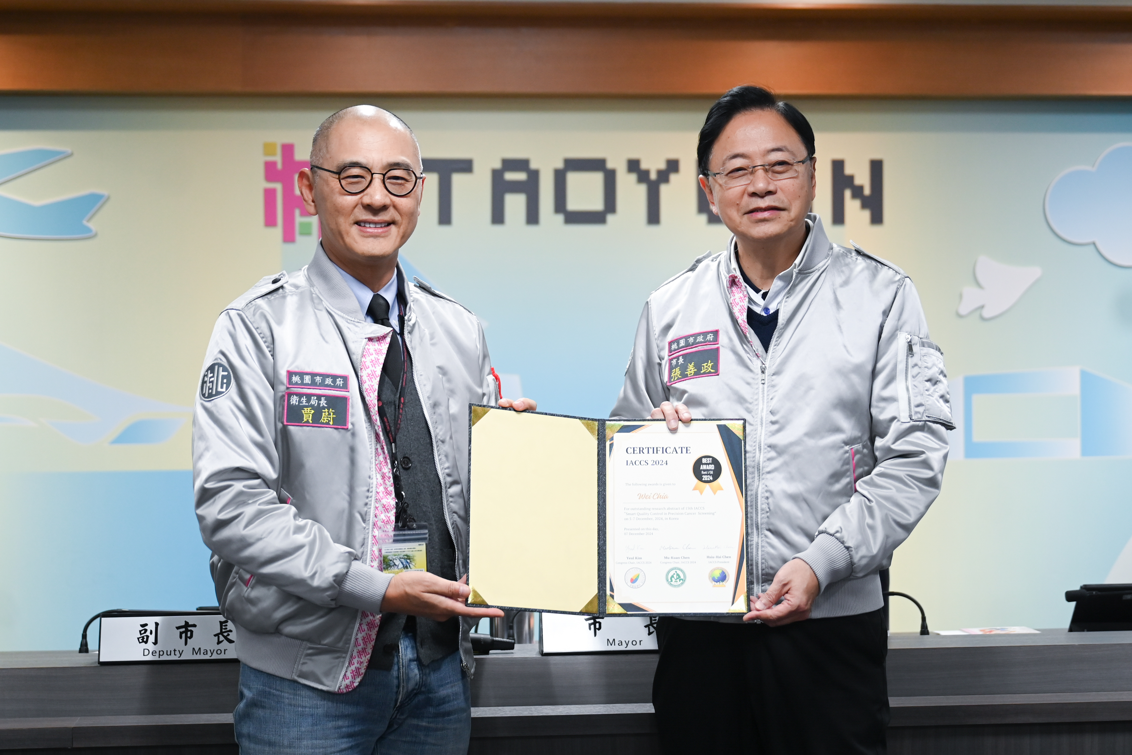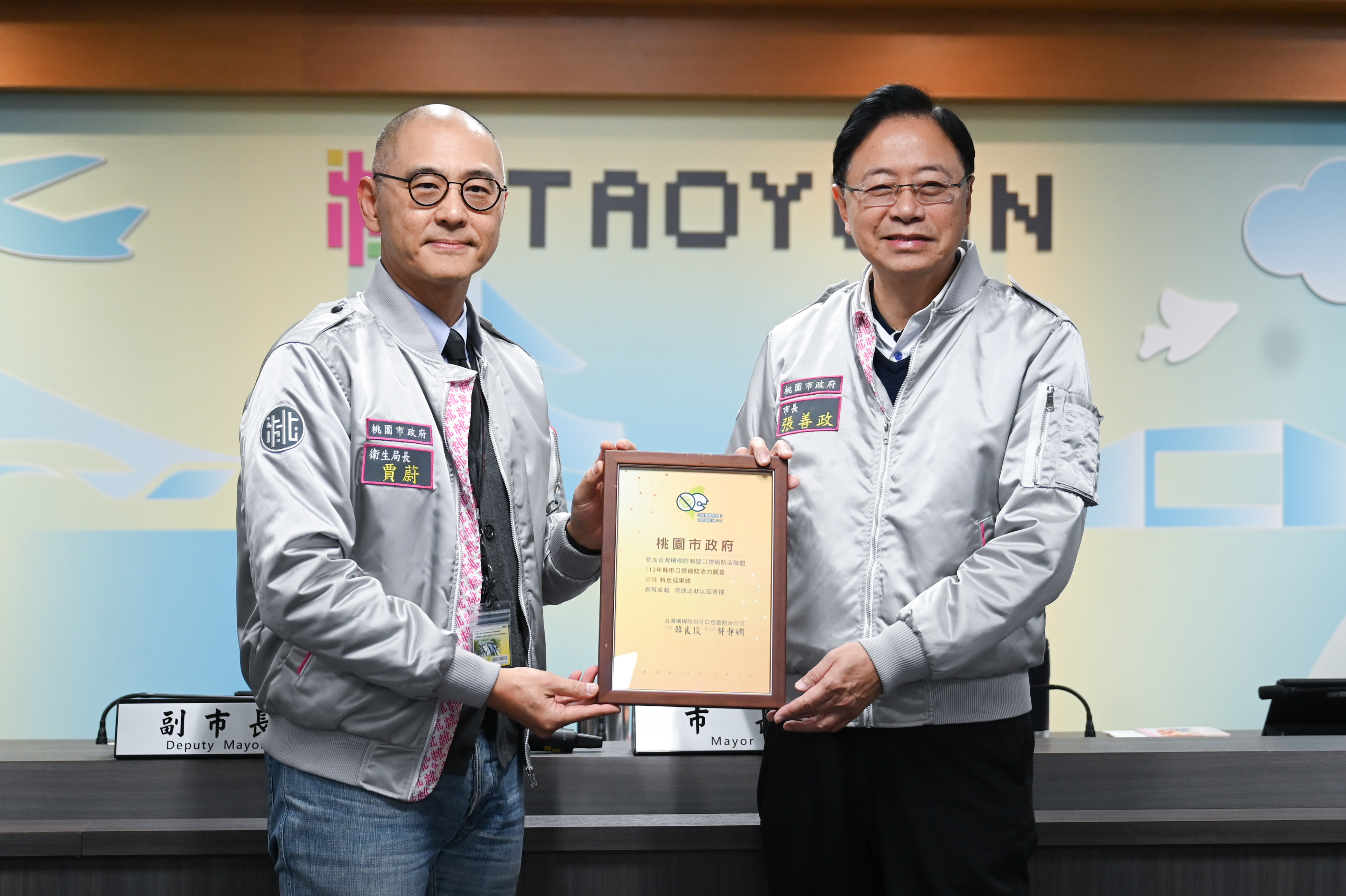 桃園市長張善政今(5)日上午主持市政會議,接受衛生局呈獻榮獲「健康促進工作獎項」。張市長表示,市府團隊將持續精進,致力為長者打造更友善、健康且充滿活力的生活環境,期許明(115)年能再創佳音,勇奪金牌榮耀,攜手共創桃園美好的未來。