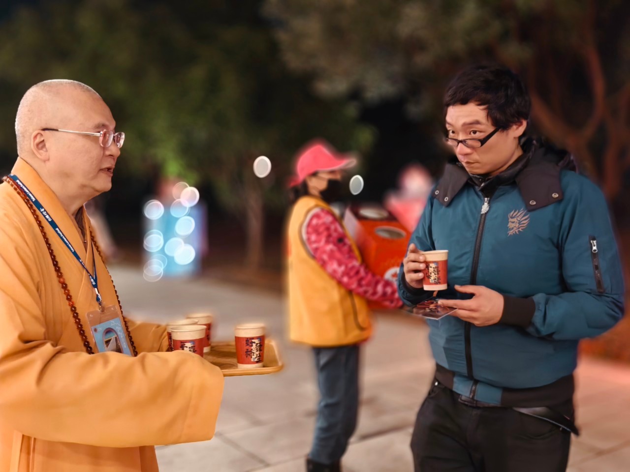 除了二胡演奏外,現場還有熱鬧的布袋戲表演,吸引大小朋友觀看;禮佛區師父帶領眾人誦經迴向,讓人心靈沉靜,法喜充滿;茶席區茶香四溢,品茗間更添一份寧靜與喜悅 ,讓人流連忘返。整個圓光寺燈會沉浸在一片祥和與歡樂之中,宛如人間淨土。(圖/慧開法師、石鼓寶蓮法師攝及敦親睦鄰班演嘉居士提供;文/演嘉居士)