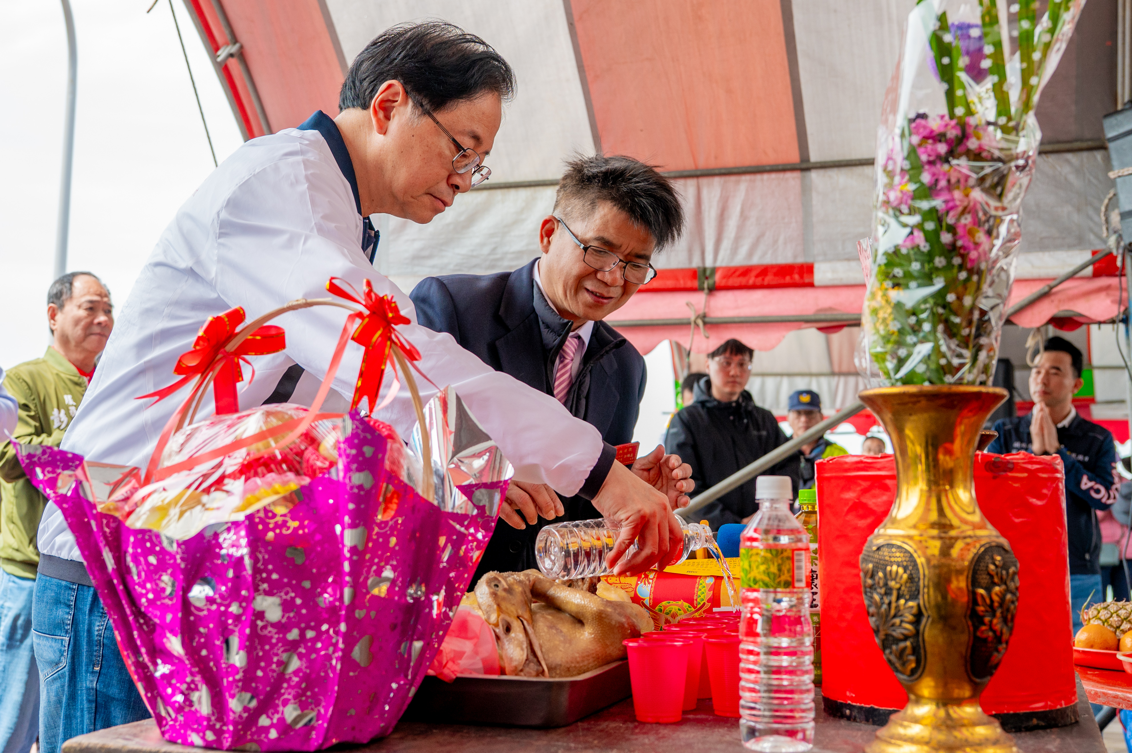 今日包括法務部次長黃世杰、市議員陳睿生、市府民政局副局長藍品畯、農業局副局長黃玉詩、新屋區長鄭詩鈿、新屋天后宮董事長羅鴻霖、榮譽董事長李煥昌等均一同出席。