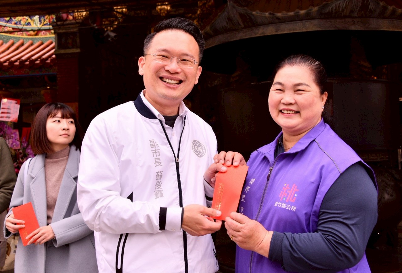 今日除舉辦玄壇元帥聖誕祈安慶典及解粽儀式,蘇俊賓也頒獎給蘆竹區21所學校30位優良導護志工,蘇俊賓現場詢問,發現許多志工已經服務近30年,順興里的里長陳淑媛表示,他已經服務28年,再差兩年就達到副市長門檻,兩人現場相約兩年後,一起來見證這個不簡單的服務歷程。他也特別感謝志工們不畏風雨地守護學生上學、放學的交通安全 ,是同學們最溫暖的守護神。