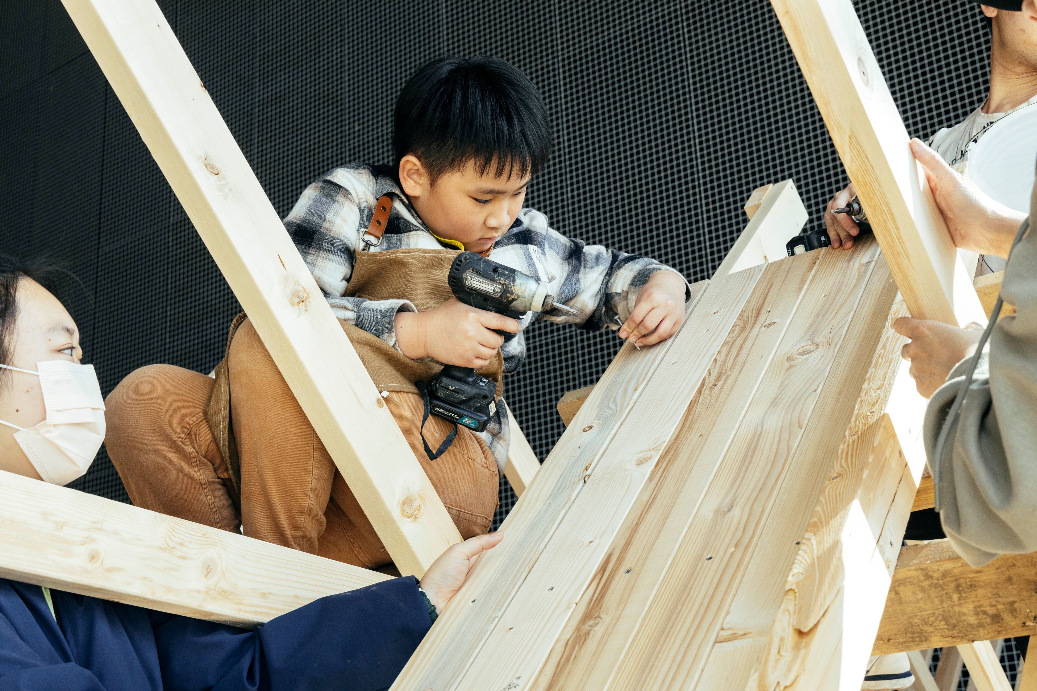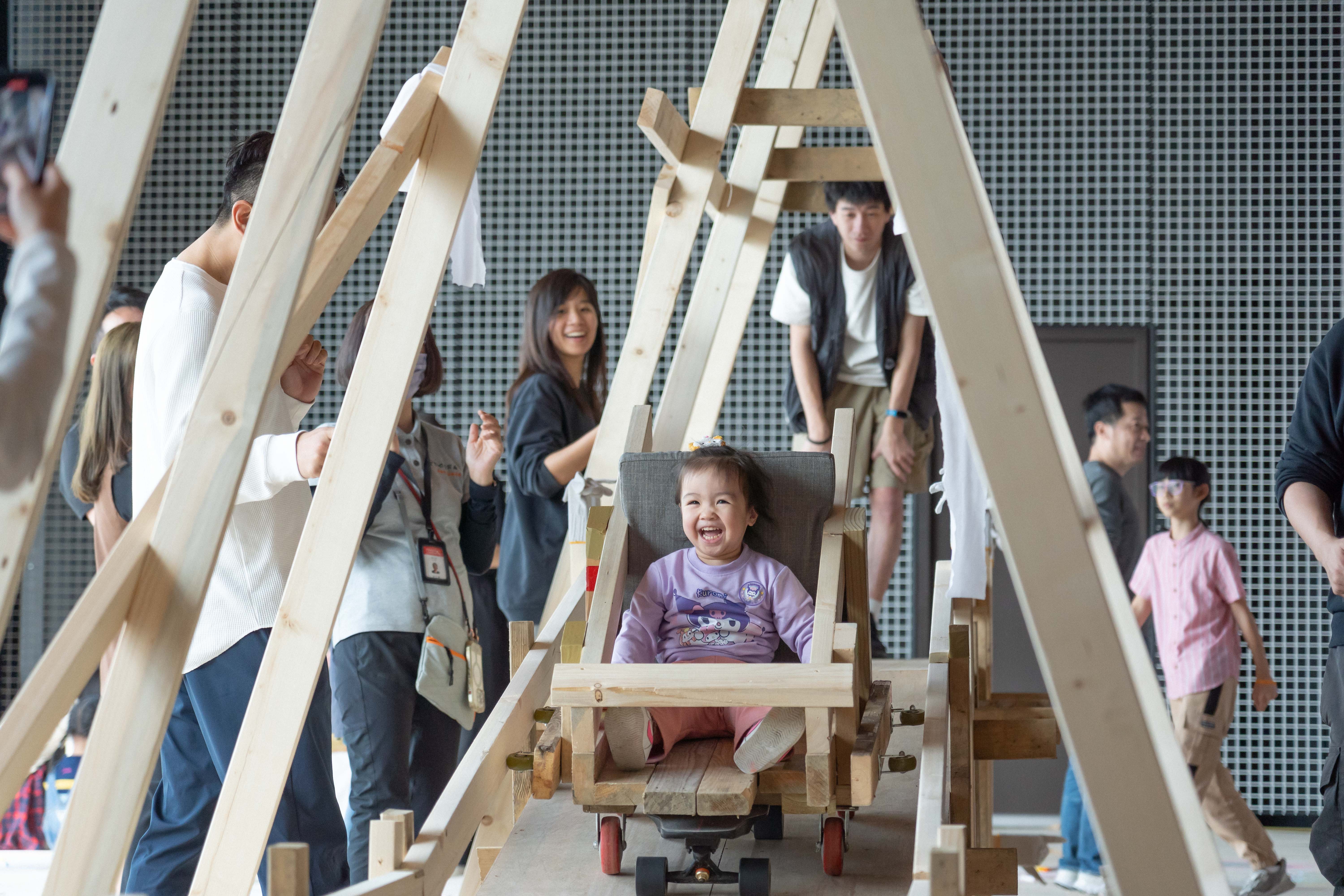 「外掛學校」自2024年啟動,致力於將美術館空間轉化為多元知識與實踐激盪的場域,今年度計畫延續這項精神,從「關於兒童、為了兒童」出發,進一步探索「與兒童一起」,甚至推進至「兒童自主」的可能性。以「和孩子們一起一起」為核心精神,邀請親子家庭、社區志工、藝術家、美術館館員共同參與設計與建造一座臨時遊戲場。