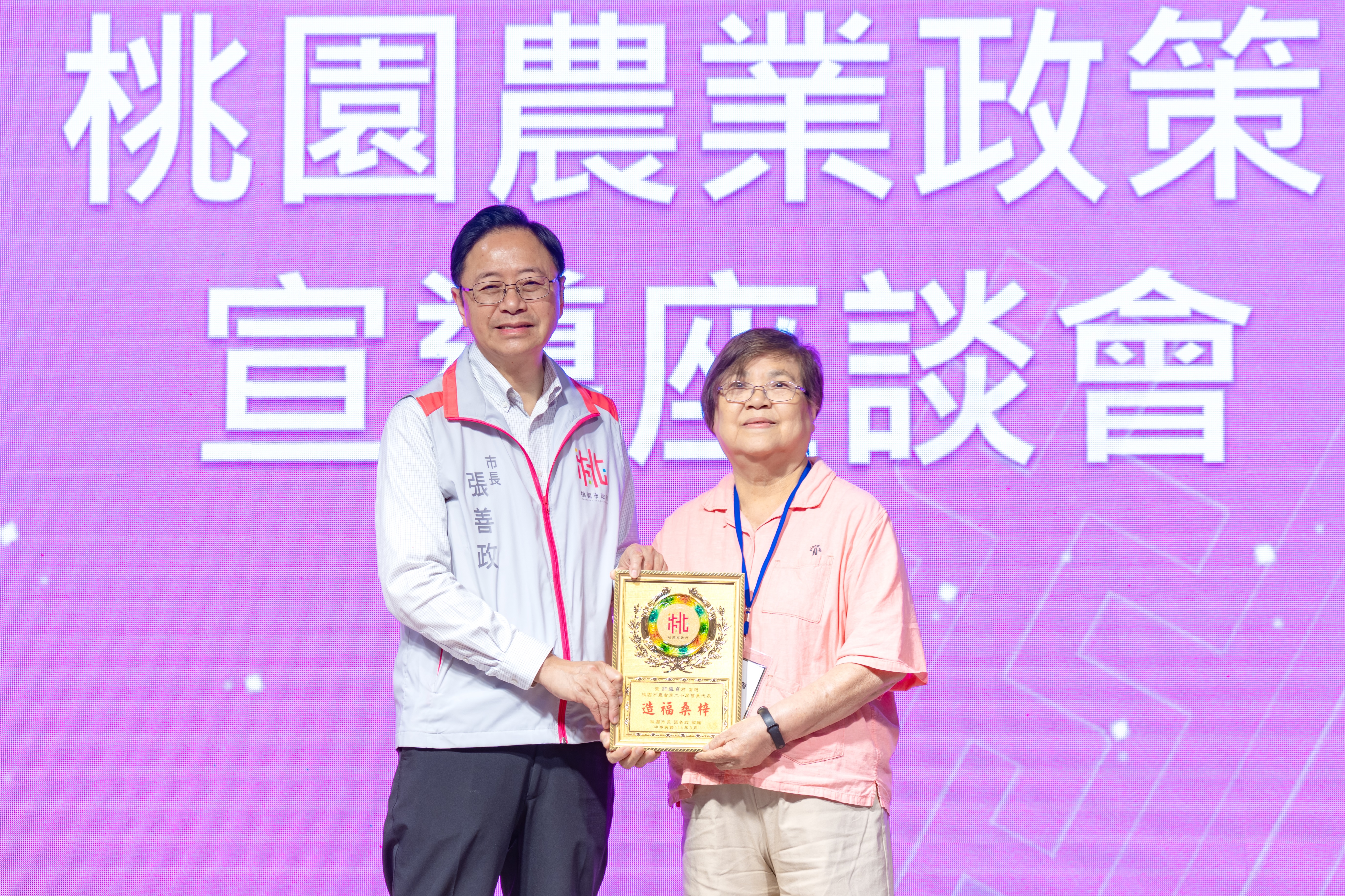 桃園市長張善政今(29)日上午前往桃園區,出席「桃園市農會114年度農業政策宣導」,分別頒發賀匾及獎牌予本屆桃園市農會三首長、理監事與會員代表,並恭喜每位脫穎而出的優秀成員。張市長表示,歷任農會當選人皆是實力堅強、熟稔農會運作的佼佼者,相信本屆新任理事長游象紀將持續帶領所有幹部及代表,扮演推動桃園農業發展的火車頭,和市府攜手引領桃園農業再攀高峰。