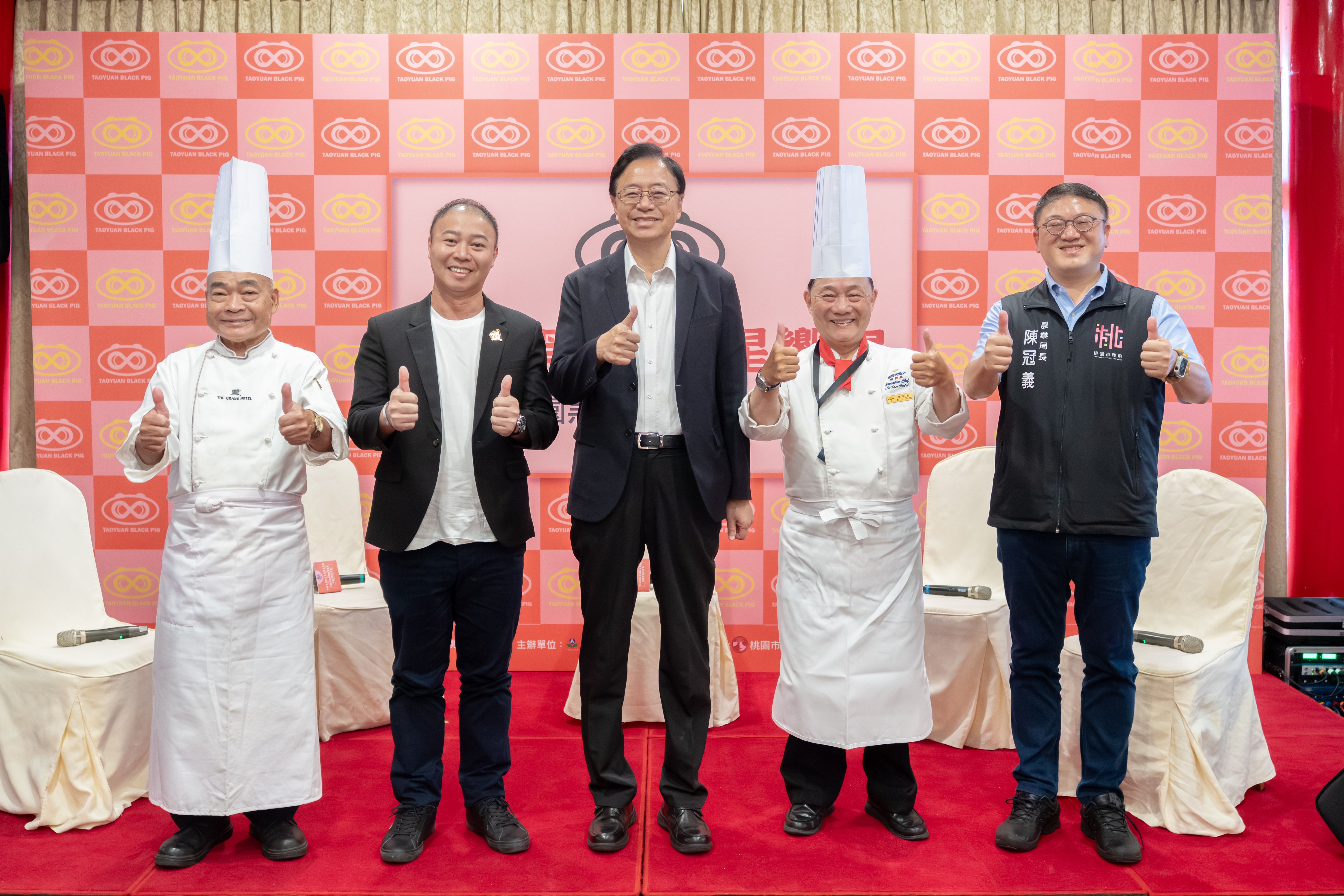 今日包括市府農業局長陳冠義、龜山區長張嘉平、萬能科技大學校長莊暢、豆府餐飲集團董事長吳柏勳、桃園市養豬協會理事長林承德、亞都麗緻大飯店天香樓米其林一星主廚路凱源、福容大飯店廚藝總監阿基師等均一同出席活動。