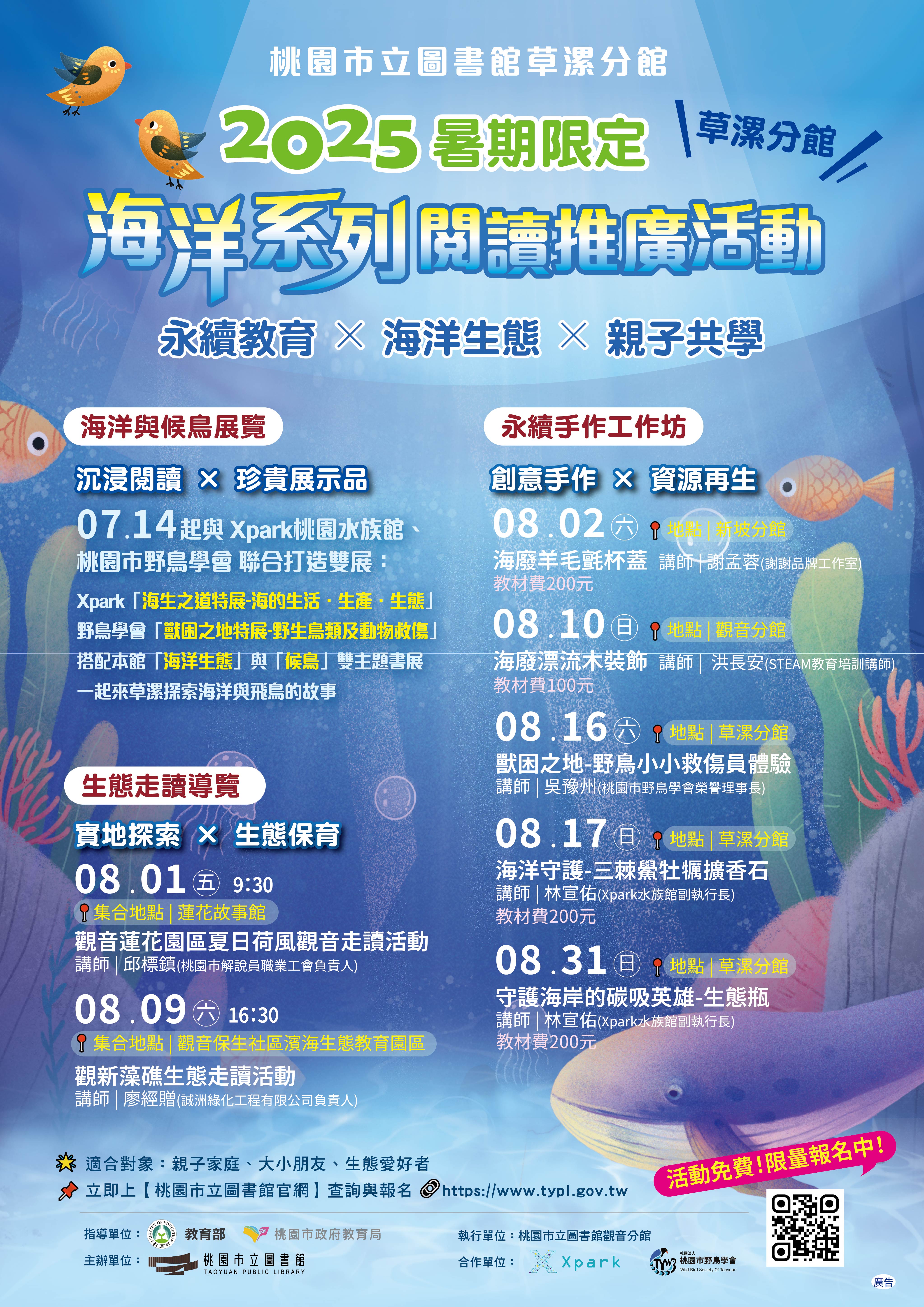 更多活動時程與報名資訊,請上桃園市立圖書館官方網站查詢。活動名額有限,歡迎踴躍參與,共度一個富知識與行動力的永續夏天!