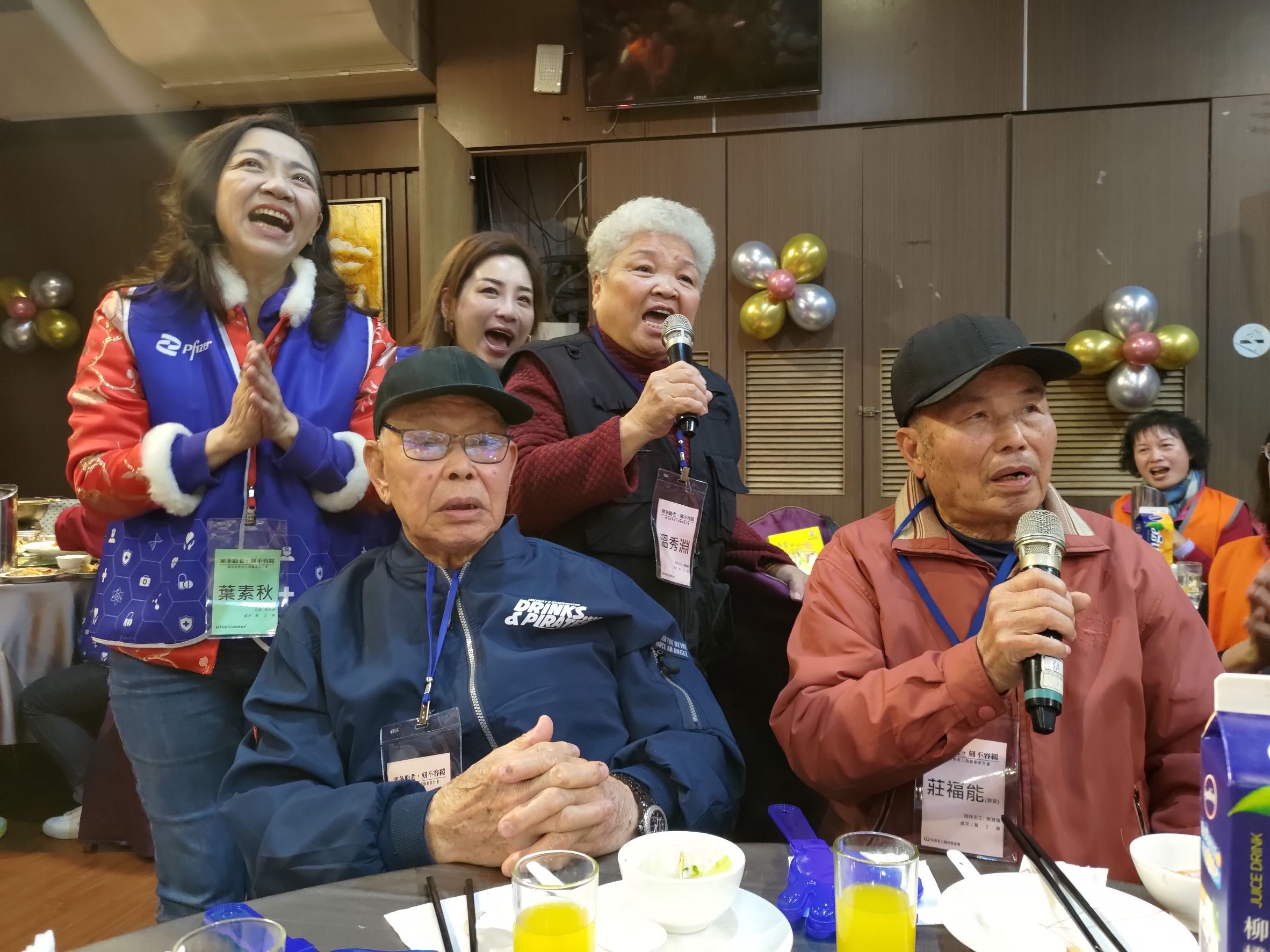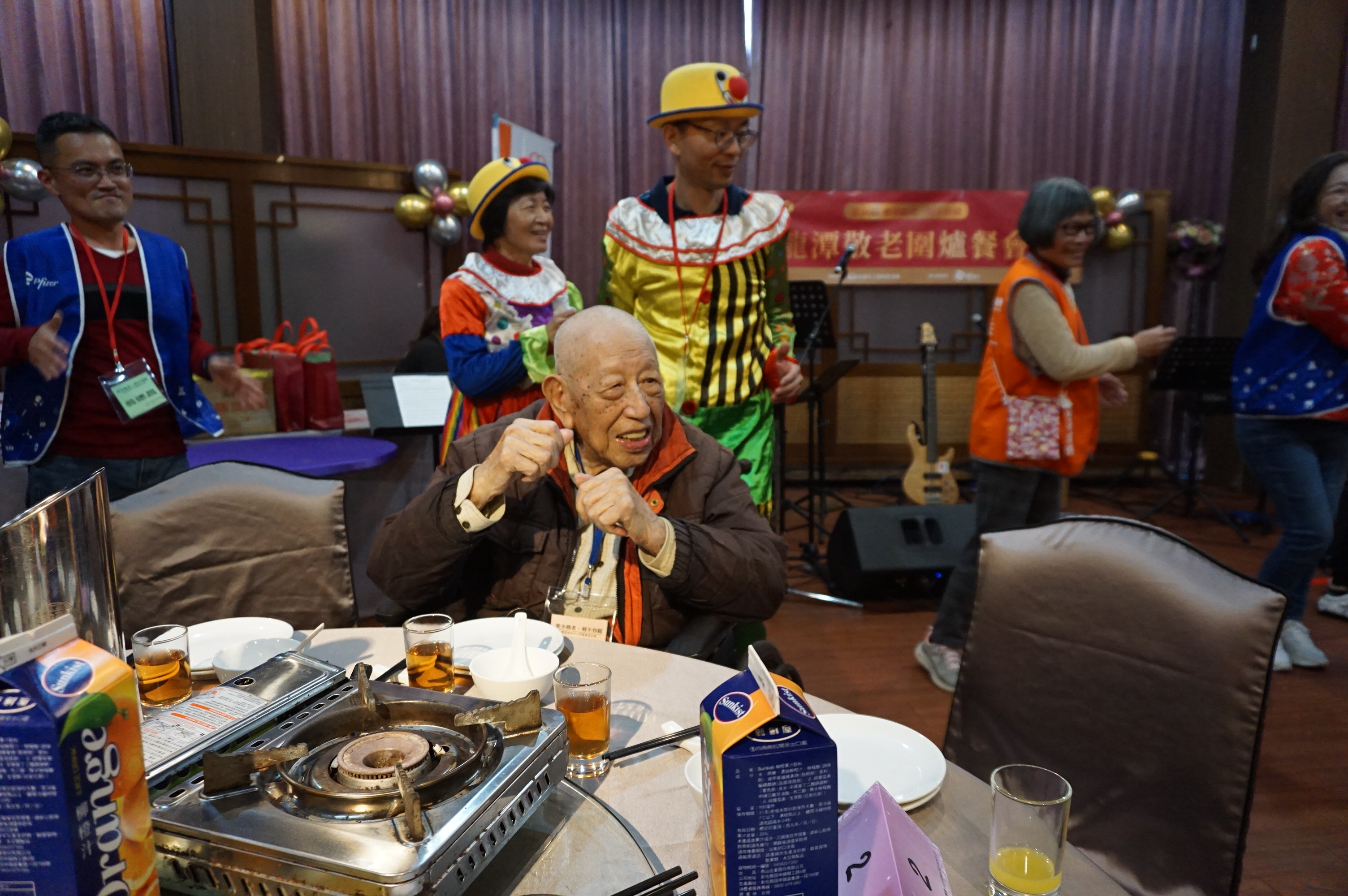 輝瑞大藥廠連續12年公益支持寒冬助老,首次走入桃園龍潭區,陪伴弘道在龍潭區服務的長輩一起吃圍爐餐、迎新年。24位同仁及家屬,陪伴23位失能、獨居、弱勢長輩走出家門,一起感受年節氛圍,此次輝瑞志工特地組成Pfizer Blue樂團演奏小城故事、流水年華等經典歌曲,帶長輩們一起進入幸福時刻,同時陪伴長輩玩老歌猜猜樂等遊戲,讓長輩也能大聲唱出一首首拿手歌曲,透過各式活動陪長輩歡喜迎新年;原本擔心可能濕冷的冷氣團來襲,龍潭今日卻異常的晴朗溫暖,讓長輩們出席更加安心。