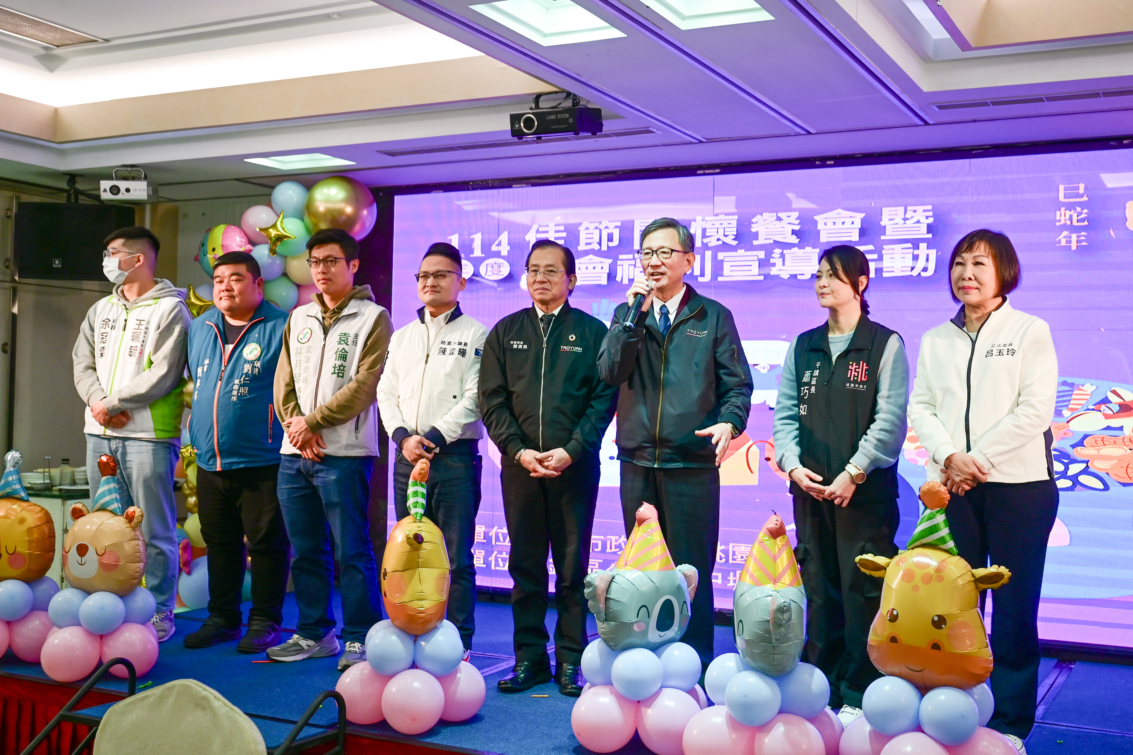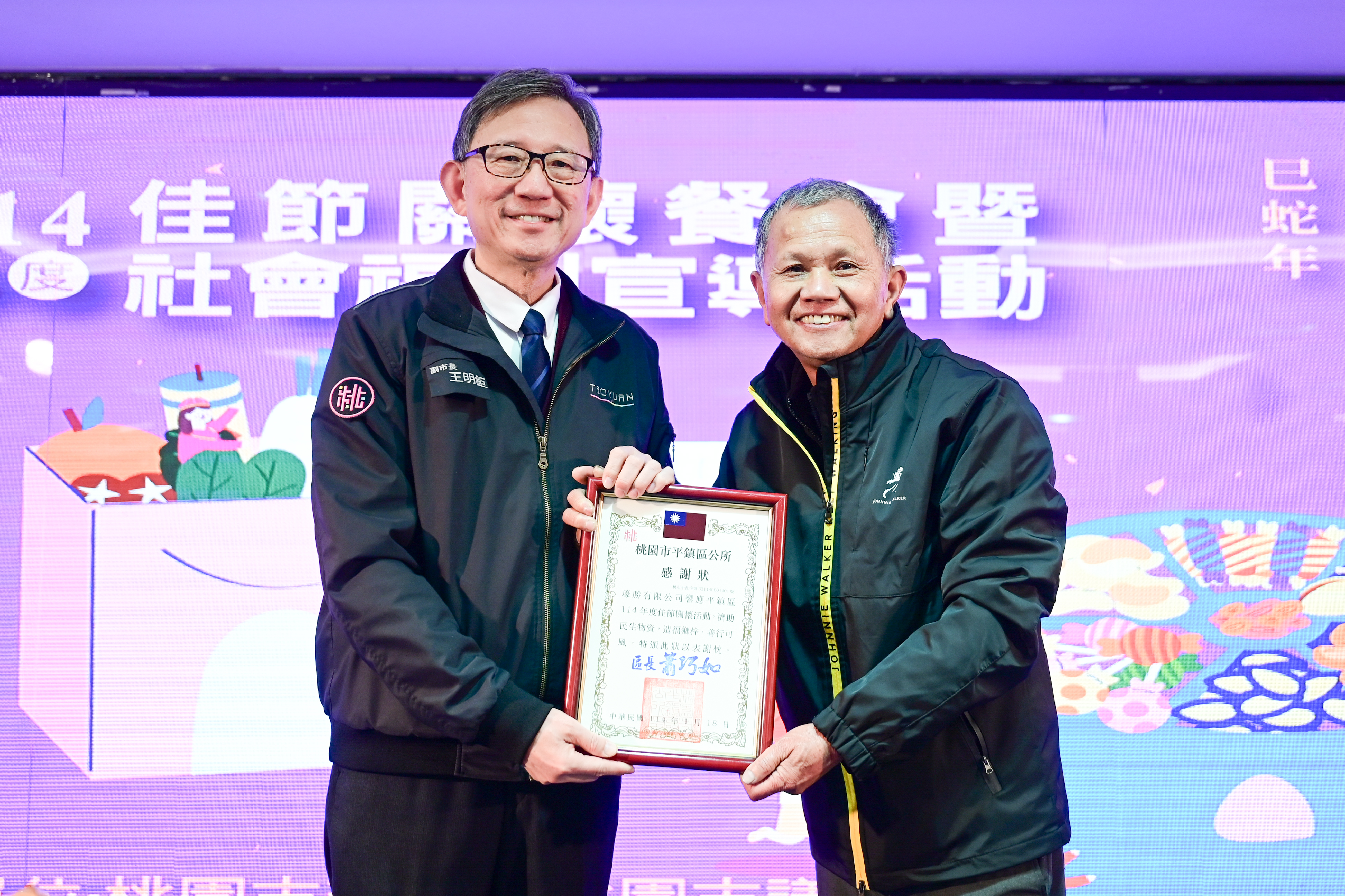桃園市副市長王明鉅今(18)日午間出席「平鎮區114年度佳節關懷餐會暨社會福利宣導活動」。王副市長表示,感謝中壢仁海宮、天得歐氏慈善基金會及壕勝有限公司持續協助市府照顧弱勢家庭,為社會增添溫暖與關懷,期盼未來有更多企業夥伴一起響應,與市府攜手關懷每一位市民朋友,讓桃園成為更宜居的城市。