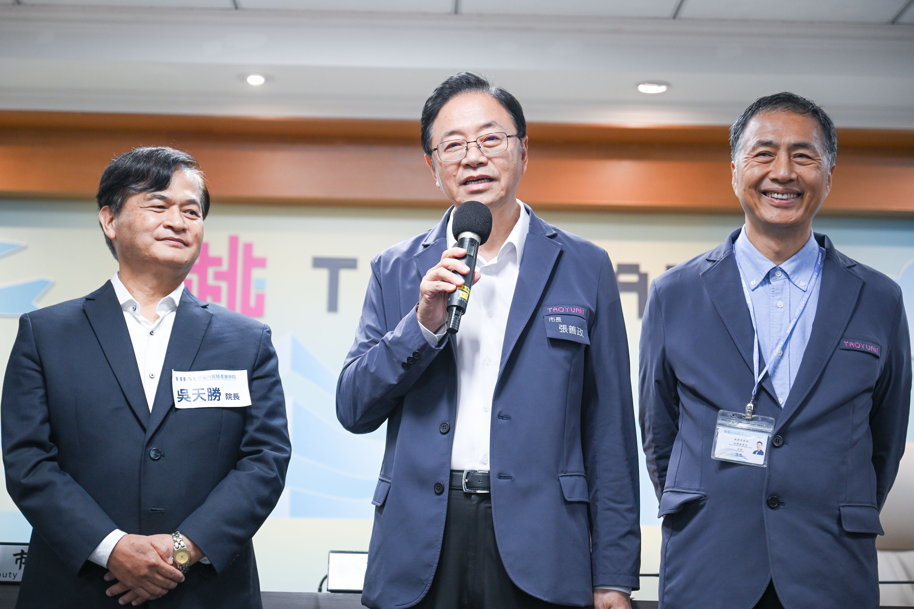 張市長進一步說明,自學院成立以來,其提供的線上與實體課程學員人次已突破1萬8,000人次,成果斐然。張市長特別指出,智慧產業學院院長吳天勝曾為漢翔航空工業股份有限公司(AIDC)的研發長,憑藉他長年致力於航空產業智慧製造與數位轉型的經歷,相信定能繼續帶領學院成長茁壯,期勉學院持續成為桃園產業升級的推動引擎,協助更多企業成功邁向智慧轉型。
