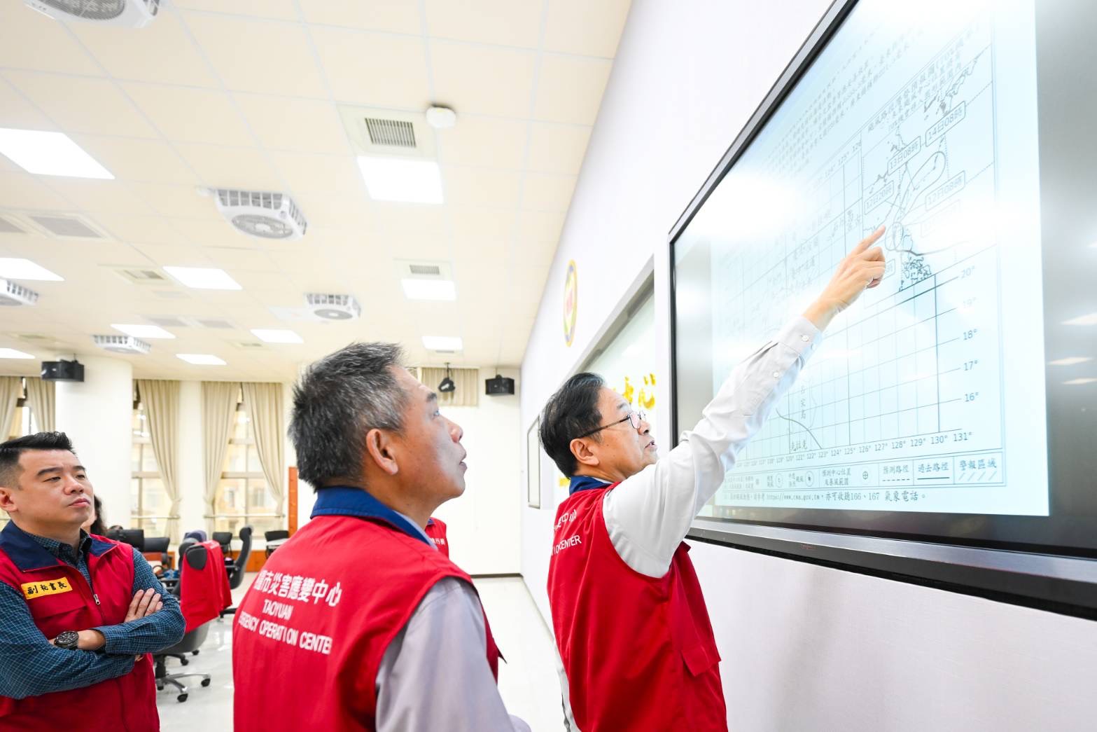 張市長視察桃市災害應變中心二級開設 指示各區嚴密防颱確保市民安全
