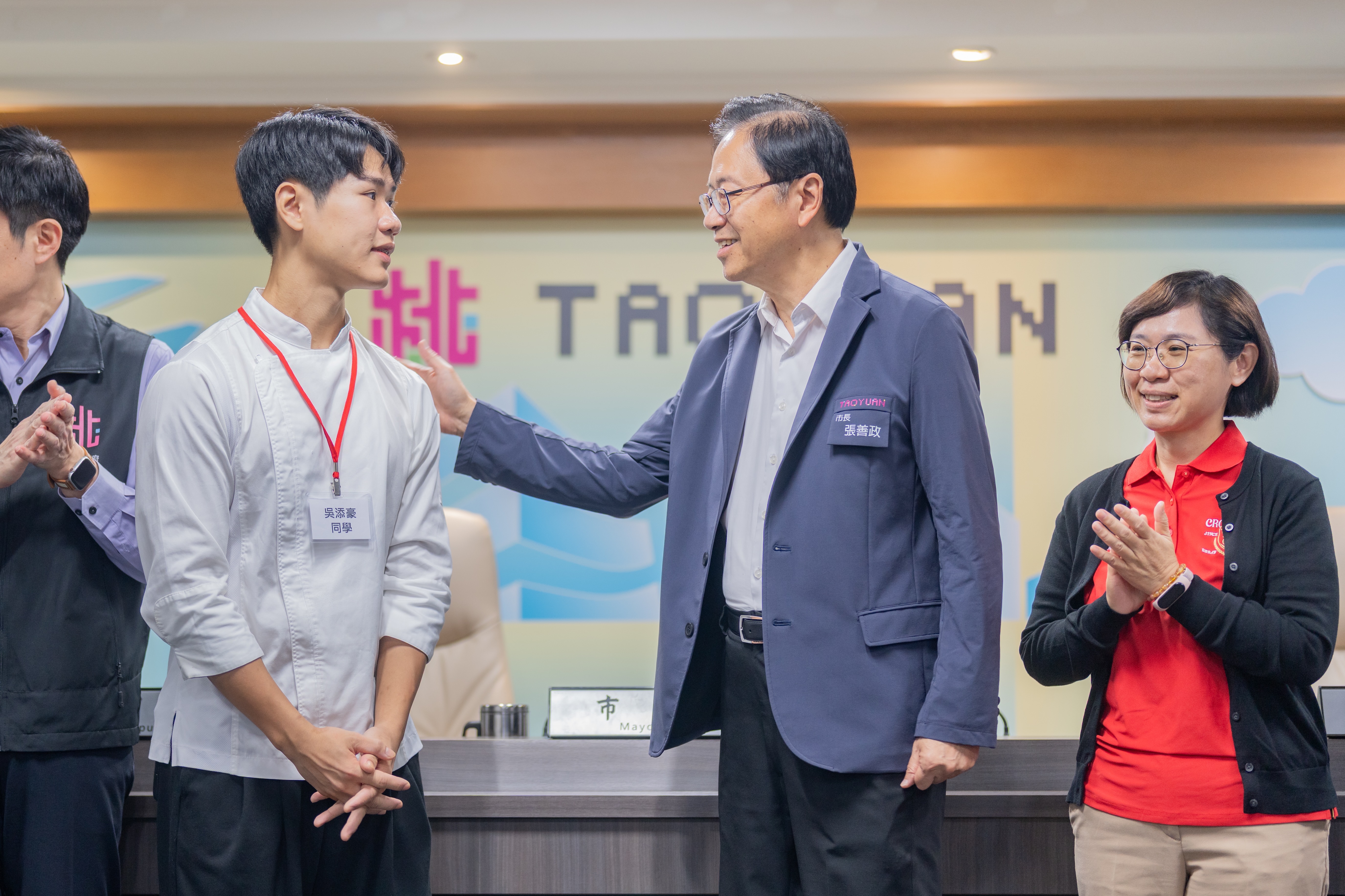 桃園市長張善政今(12)日下午於市政會議中表揚榮獲環境部第3屆首惜廚師全國第2名的吳添豪同學。張市長表示,「首惜」的「惜」意指珍惜食材、減少浪費,環境部以廚藝競賽倡議惜食理念,別具教育意義。此次吳添豪同學從全臺572名參賽者中脫穎而出,不僅展現桃園青年在永續飲食上的創意與實踐,更象徵桃園在環境教育與食物減廢推動上的成果。期勉更多學子效法吳同學精神,讓環保與惜食成為日常生活的一部分。