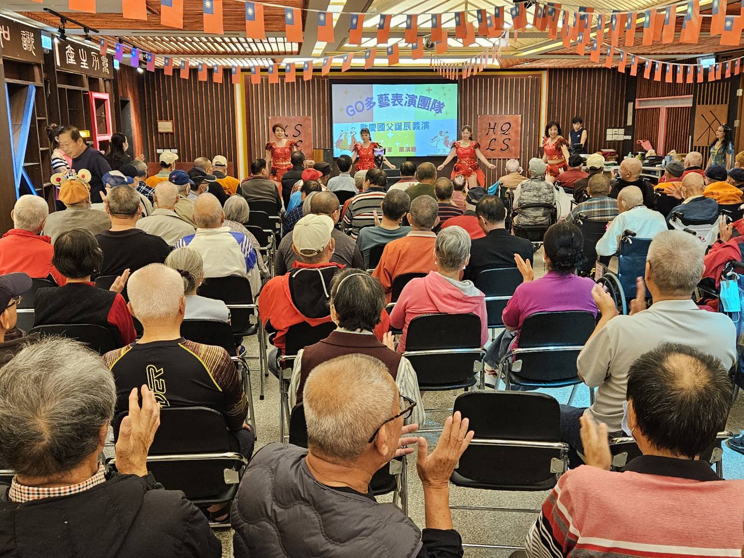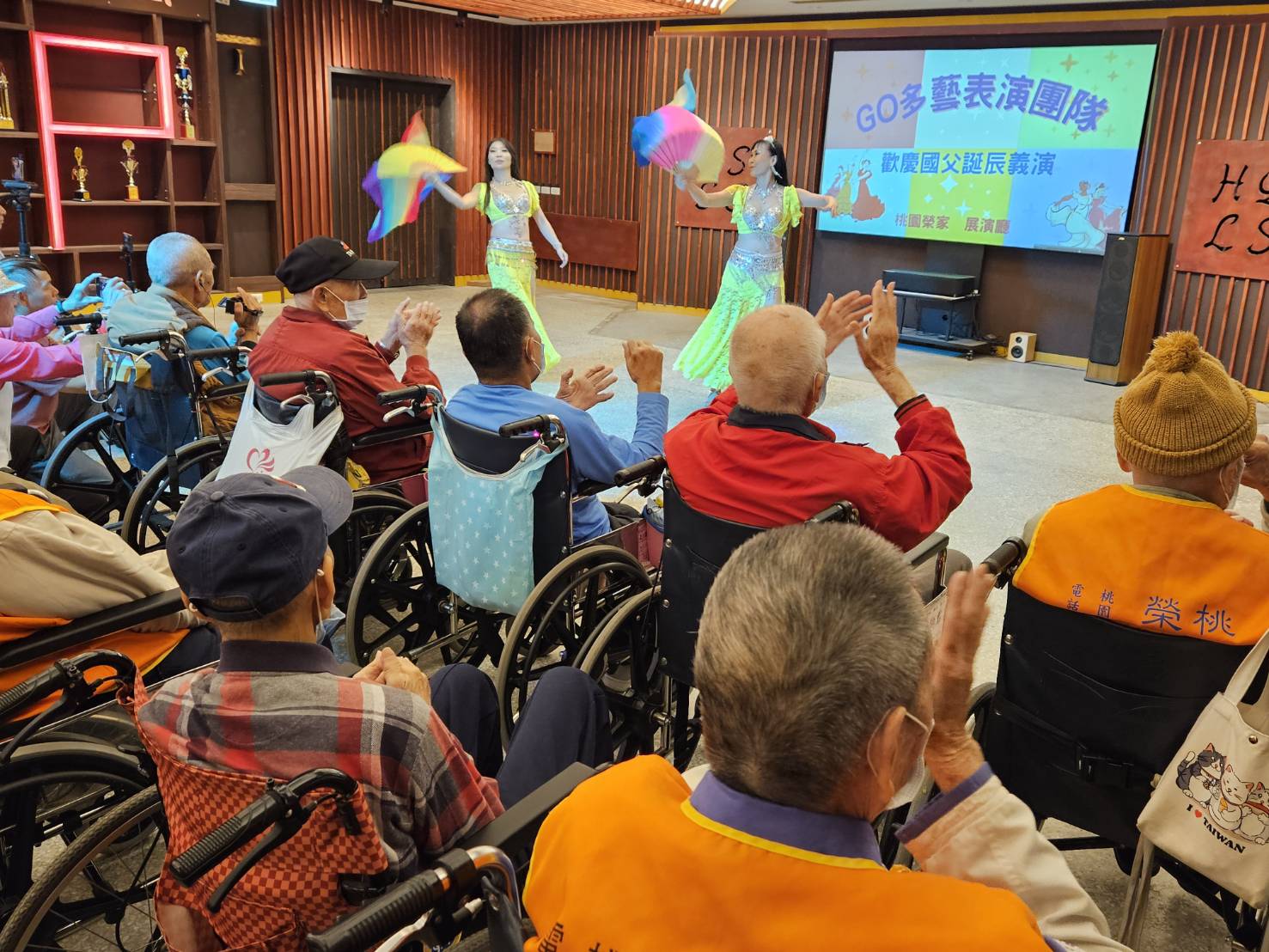 為慶祝國父孫中山先生誕辰,桃園榮家於(12)日邀請到Go多藝表演團舉辦義演活動,安排了包括印度舞、古典舞、拉丁舞、現代舞等多達十種舞碼,以多元舞蹈展演為長輩們帶來一場視覺與心靈的饗宴。