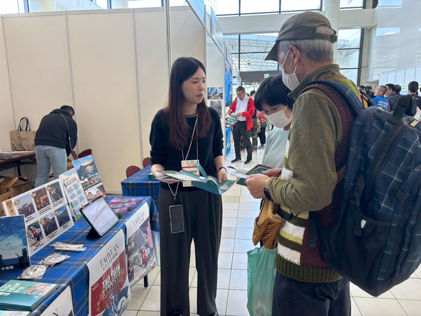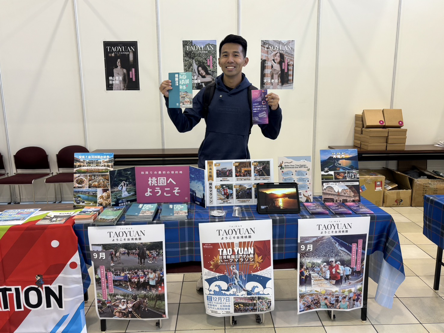 桃園市政府觀光旅遊局此次於2025神戶馬拉松博覽會設置「TAOYUAN觀光推廣攤位」,以觀光大使葉舒華作為主視覺亮點,結合大龍門、青埔、小烏來等人氣景點,全方位展現桃園兼具山海風貌與都市活力的觀光魅力,成為博覽會現場矚目焦點。活動期間,吸引大批日本民眾駐足欣賞舒華於桃園景點拍攝的形象照片,不少人停下腳步拍照打卡,並熱情索取旅遊文宣、導覽手冊及相關旅遊資訊,現場互動氣氛熱烈。許多參觀者表示非常喜歡舒華,透過她的視角,更加認識桃園的自然風光與城市魅力;也有民眾笑說,下次造訪台灣時,一定要安排一趟「舒式旅程」,親自走訪舒華拍攝過的景點。