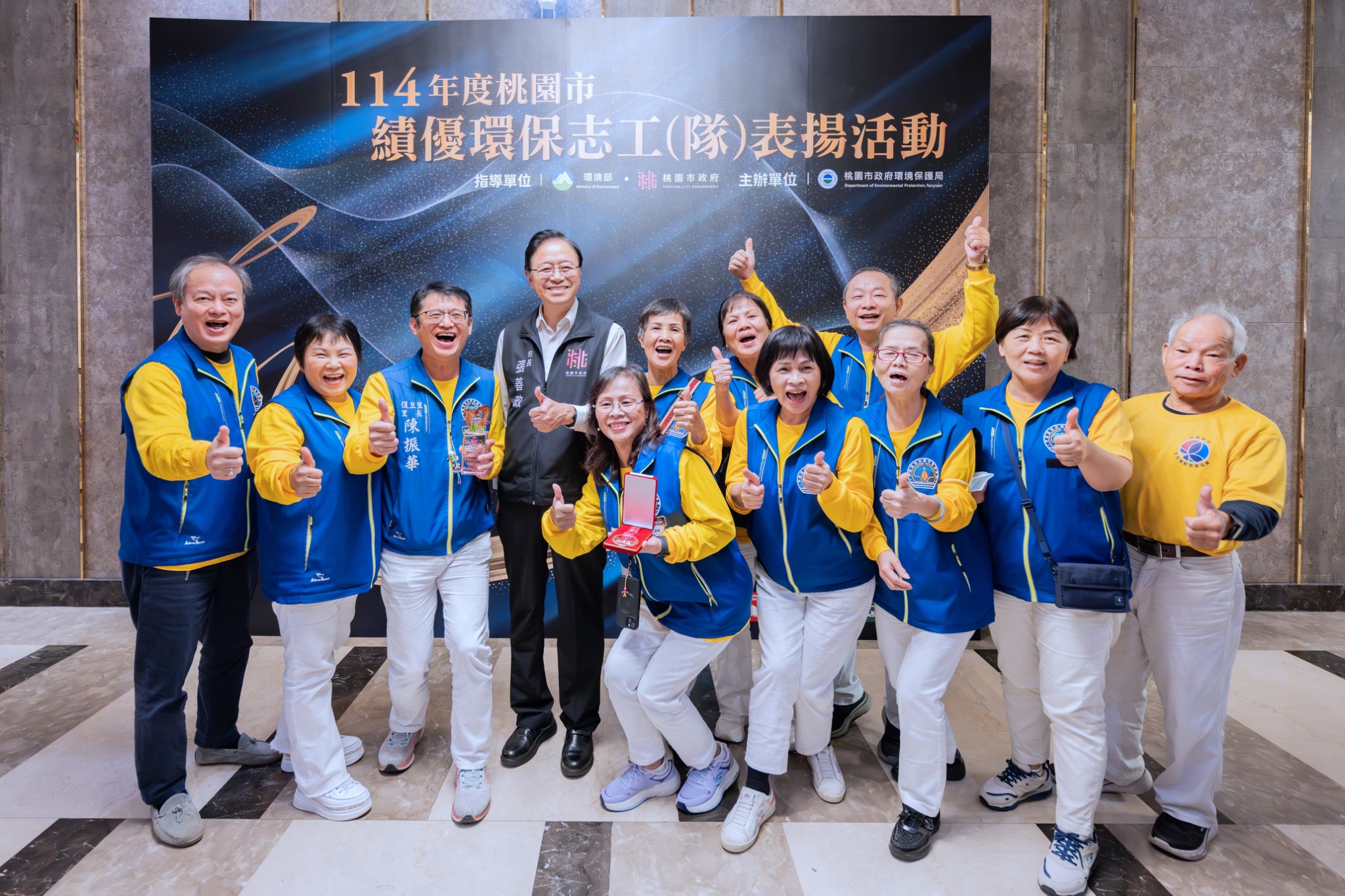 桃園市長張善政今(14)日晚間前往桃園區,出席「114年度桃園市績優環保志工(隊)表揚」,頒獎予45名績優環保志工、10支績優志工隊,以及代表本市參加「114年全國環保志(義)工群英會」獲得特優佳績的4支隊伍。張市長表示,桃園有603隊、逾3萬名環保志工,長年投入心力及熱情維護城市環境及整潔家園,感謝志工們無私付出,協助市府推動環保與防疫工作,是守護城市環境重要力量。