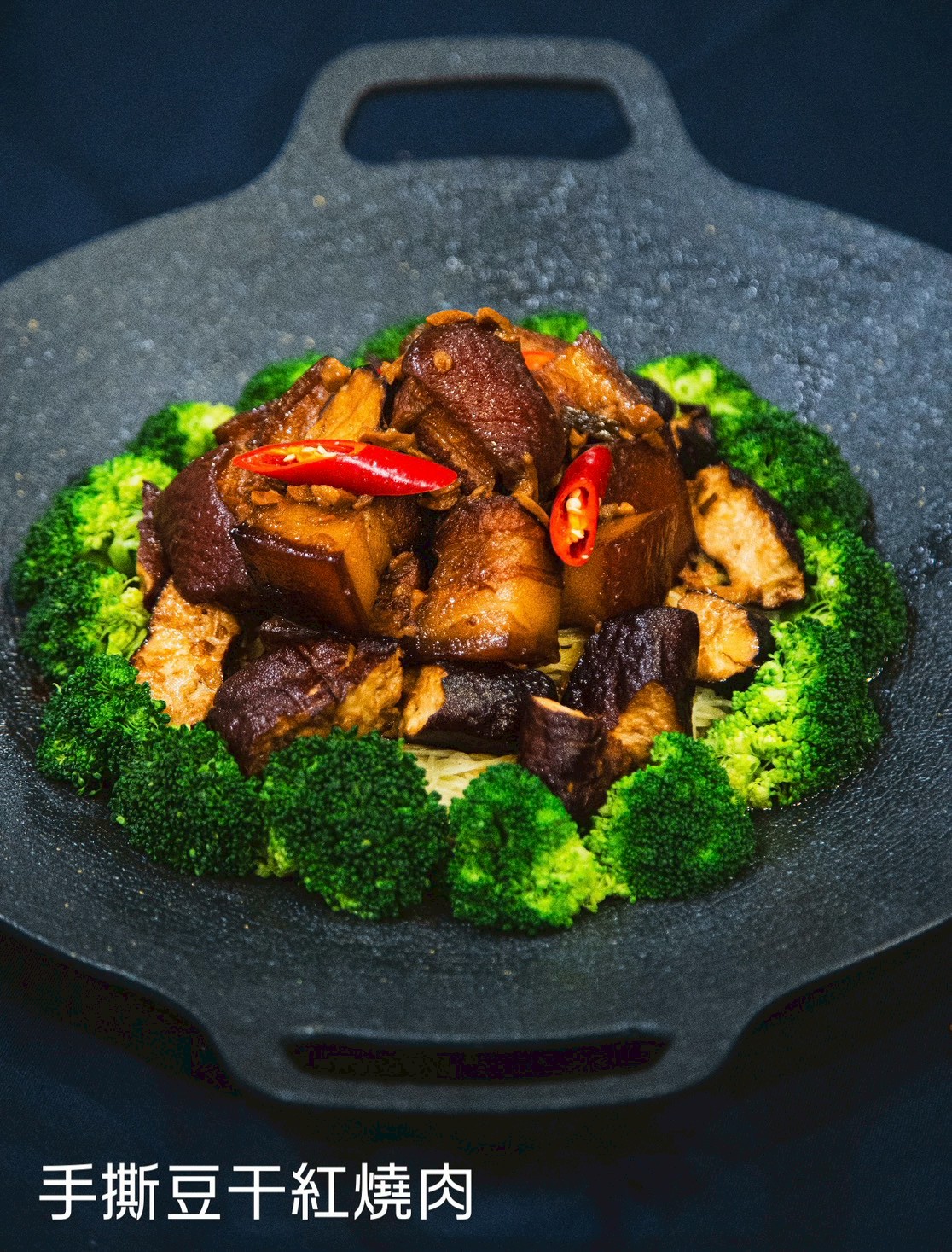 除了鄭智善主廚製作的豆干肉捲之外,大溪豆干宴十道創意料理還包含了開場的〈大溪風味小吃選〉,內含蜜汁香妃干、海蜇皮豆干、碗粿、花生酥糖、香腸、泡菜等,彷彿走進大溪老街的復古時光,鹹、甜、香氣交錯,是記憶裡大溪街角的滋味。其他料理包含〈拔絲豆腐肉丸〉、〈手撕豆干紅燒肉〉、〈豆乳鍋・山水共炊煙〉、〈福袋干貝油飯・藏香舊街語〉、〈豆椒蒸鮮魚・潤物無聲〉、〈豆乳醬鮮鮑・心有餘香〉、〈千張香卷・歲月之卷〉、〈時光凍豆腐・鮮雞湯語〉、〈豆乳銀耳・手工地瓜餅・甜韻終章〉等,每一道料理都是料理職人們以豆干、豆製品為靈魂,串連出大溪的風土與人情,打造「十桌十一味」的桃園秋夜味覺盛宴。