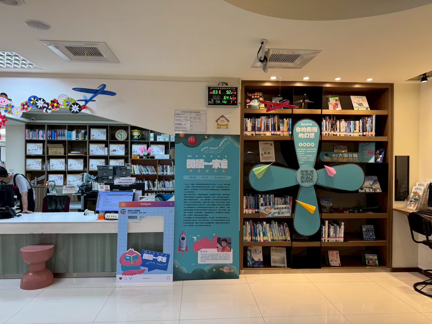 康莊分館「閱讀交換留言板」分享書單靈感,大園分館「你的飛翔幻想」讓夢想起飛,草漯分館「帶動物們回家」認識台灣動物生態。