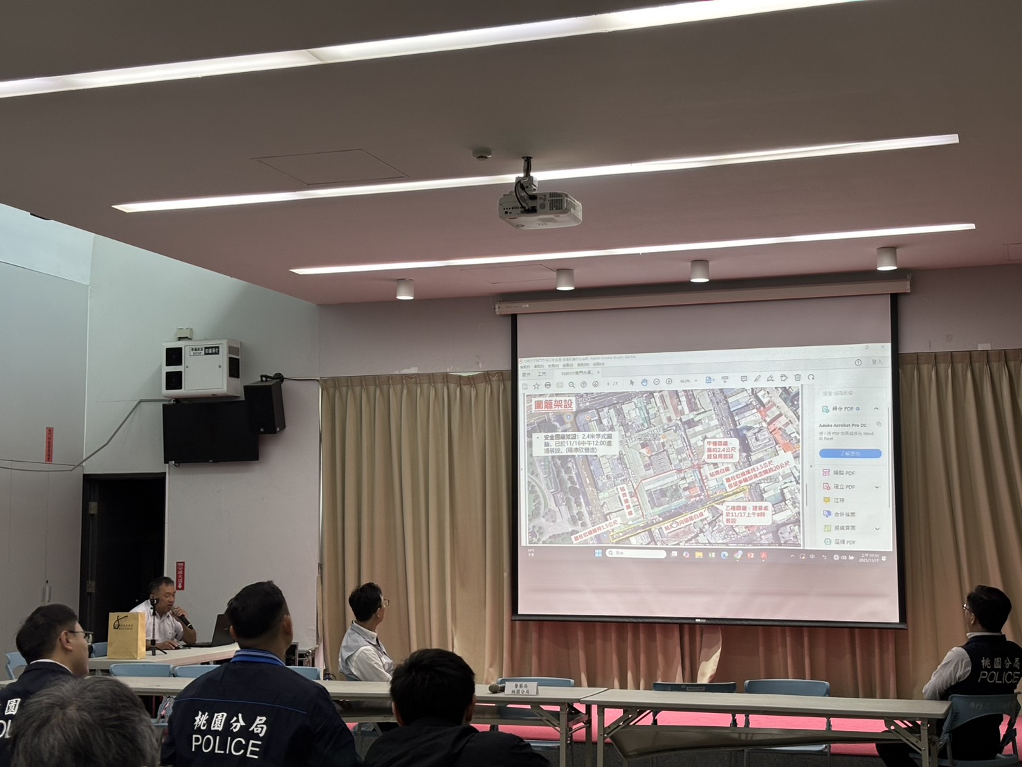 市府今日上午7點啟動應變中心(聯合稽查小組)相關作業,包含成員集合、行前會議及現場確認,並同步展開文化街圍籬架設、拆除作業及聯合稽查,以確保施工安全與作業順利推進。