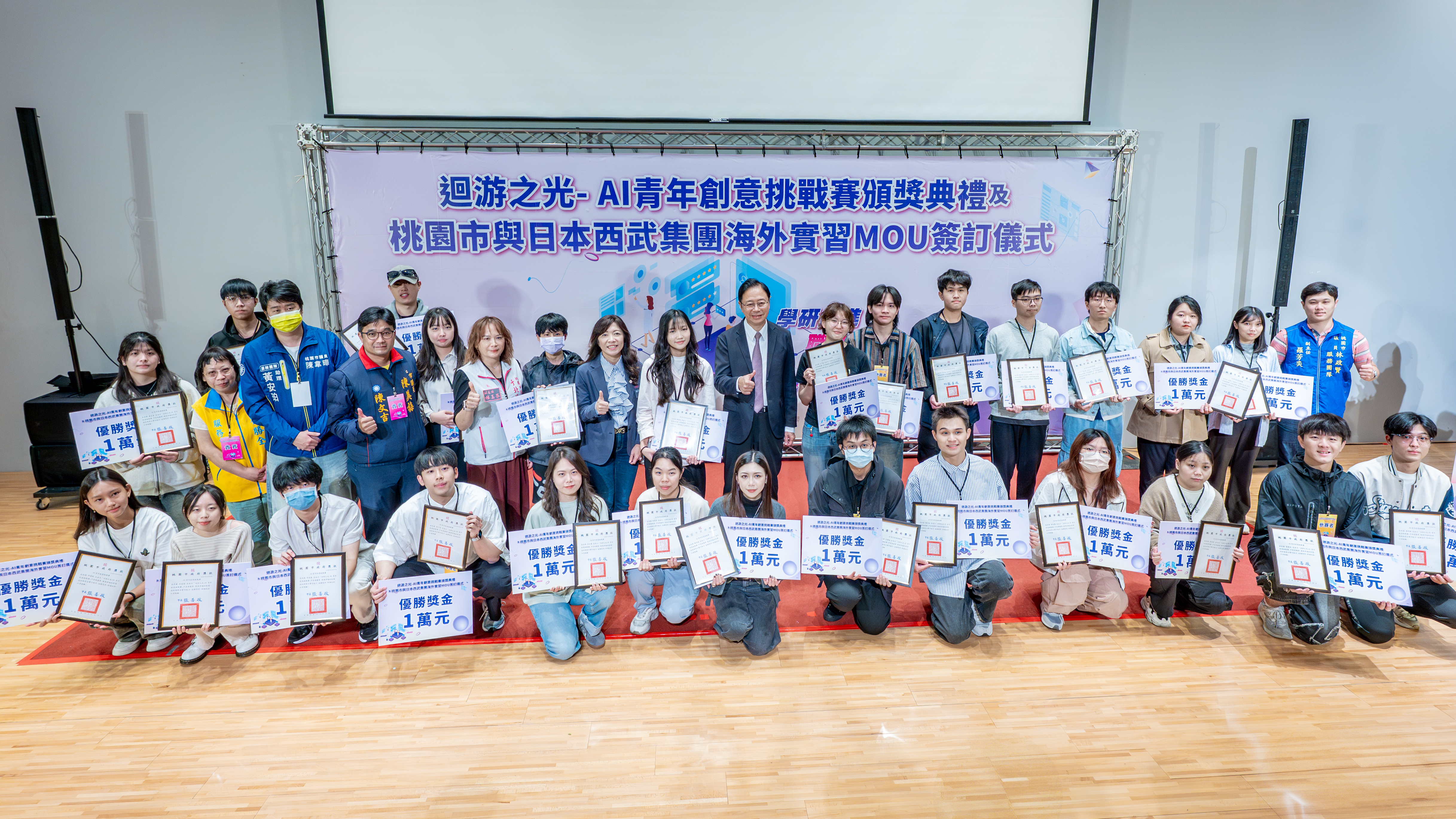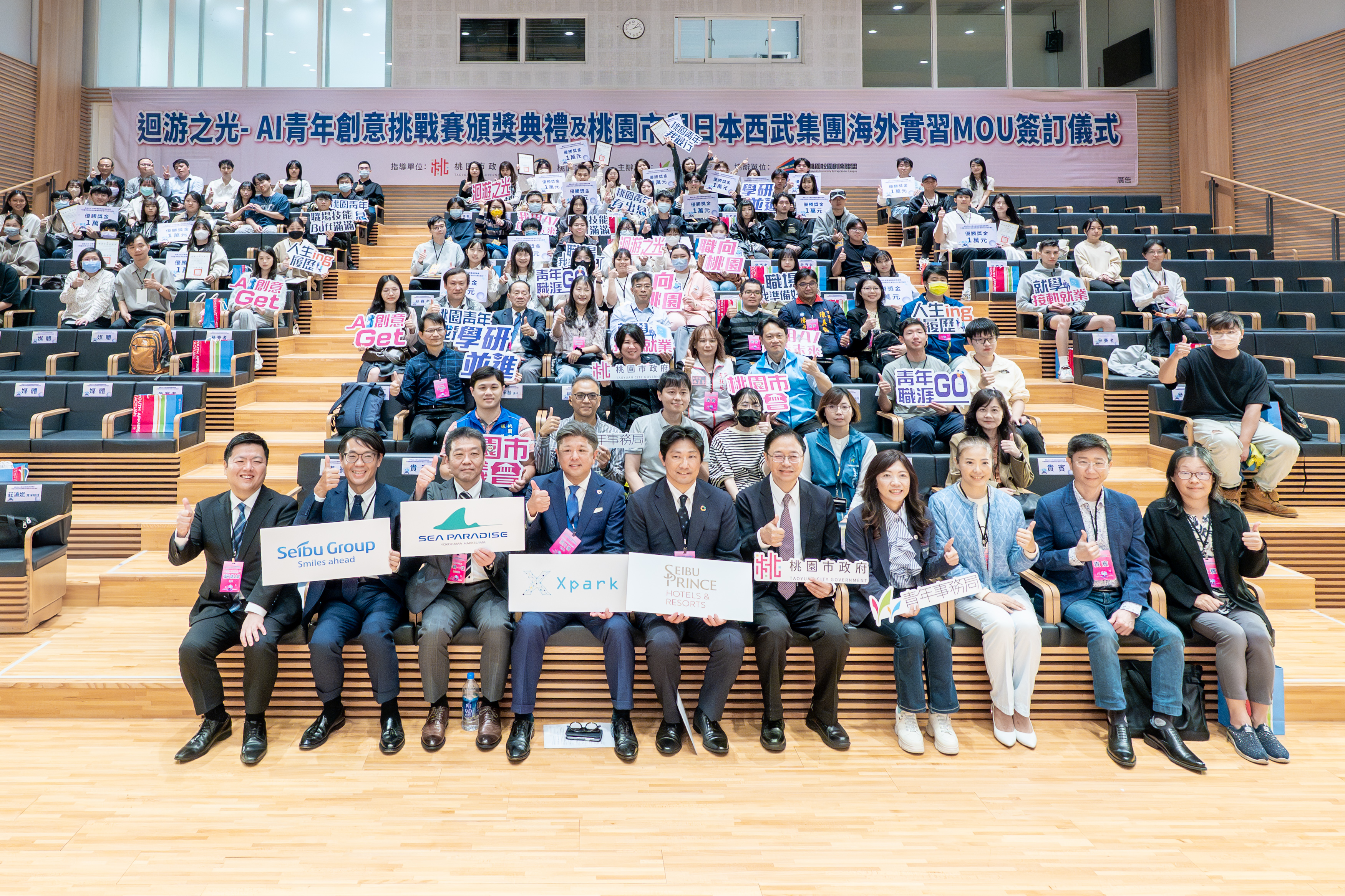 青年局表示,今年「洄游之光-AI青年創意挑戰賽」自7月開放報名以來,吸引逾百名青年參加。今日除了頒獎給在競賽上展現AI工具應用創意的優秀青年朋友們外,與西武集團的簽訂海外實習MOU,更是助力本市青年職涯發展的重要里程碑。期盼與日本西武集團旗下西武王子大飯店國際株式會社(SPW)及其子公司橫浜八景島株式會社的合作,開啟桃園青年赴日實習的新渠道,進一步拓展國際視野與競爭力,協助本市青年走向世界。