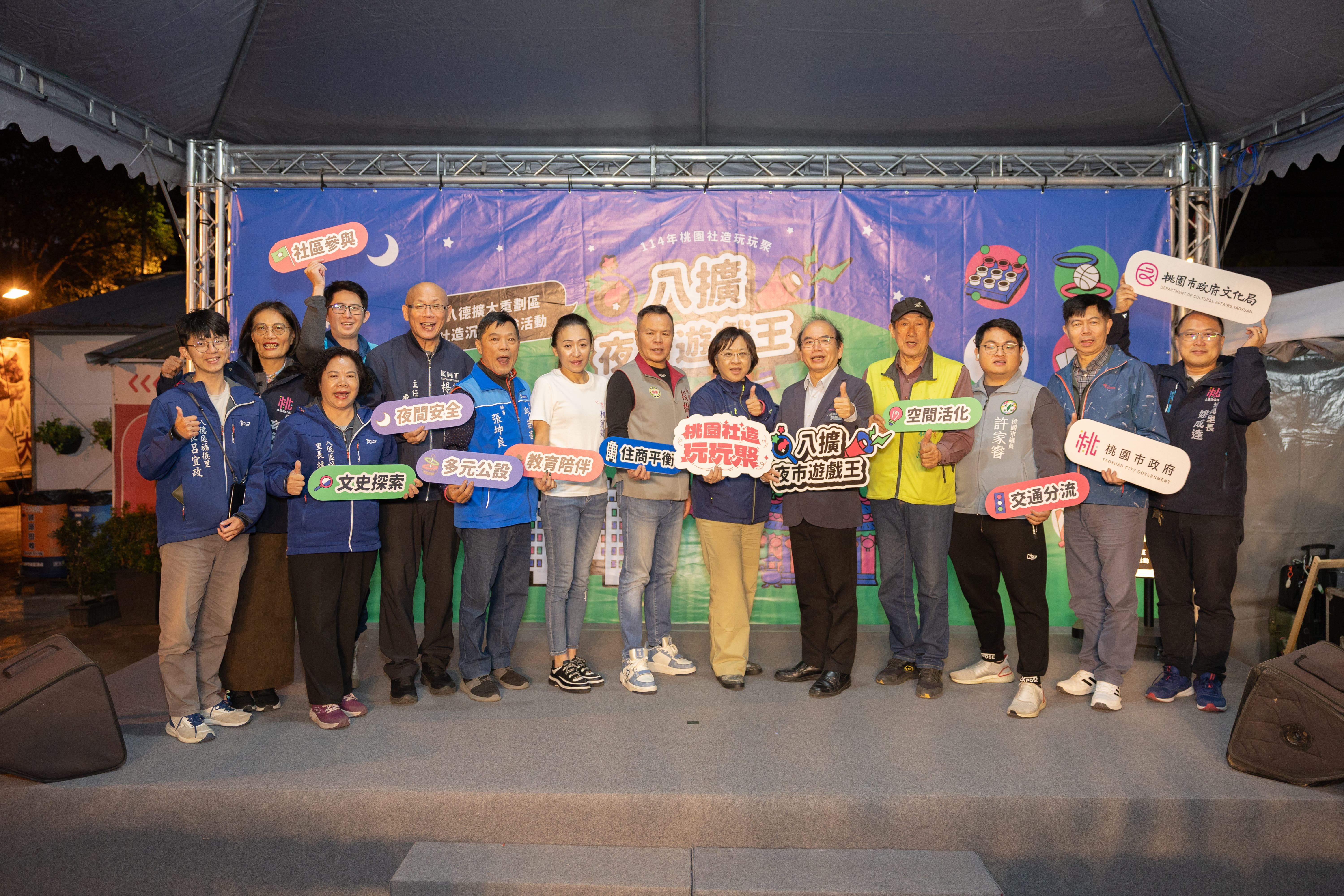 桃園市政府文化局主辦的「桃園社造玩玩聚」年度活動《八擴夜市遊戲王》於11月28日八德興仁花園夜市正式開跑,玩家們化身「夜市挑戰者」,穿梭九大闖關攤位,以投擲、射擊、彈珠台等經典夜市遊戲,揭開八德擴大重劃區的生活議題,讓夜市一夜之間成為最有趣的在地實境遊戲場。