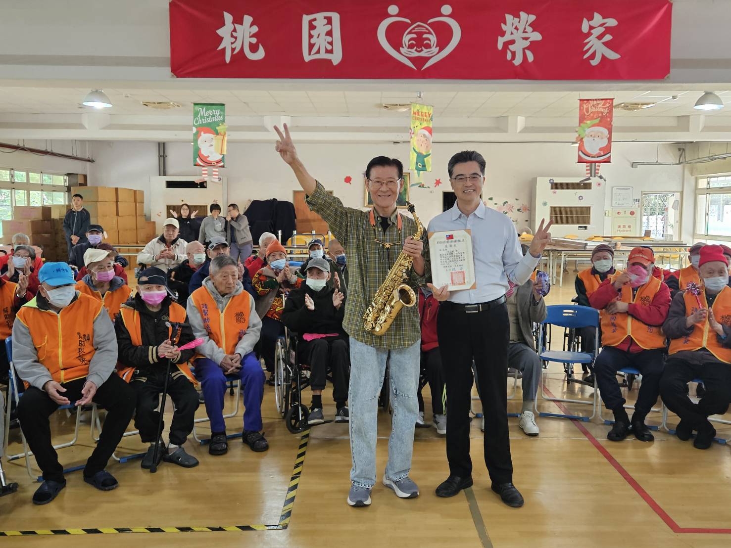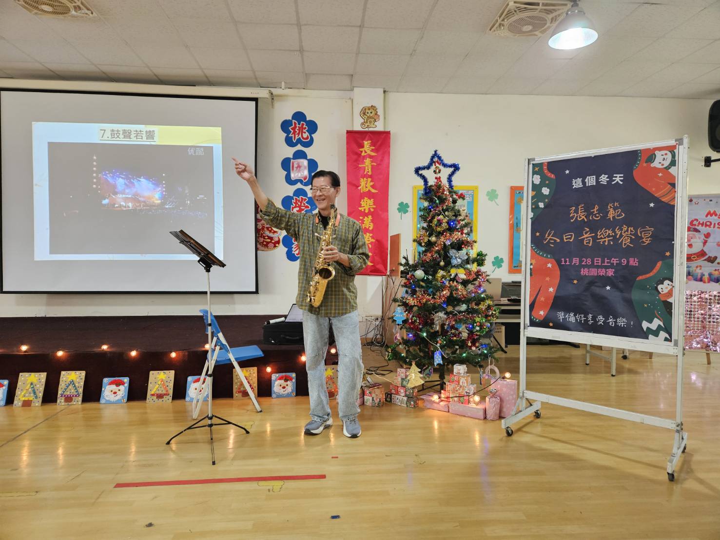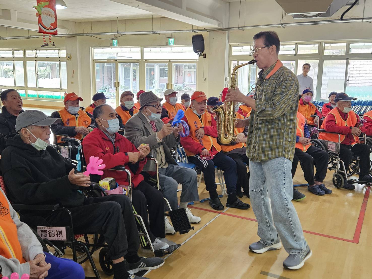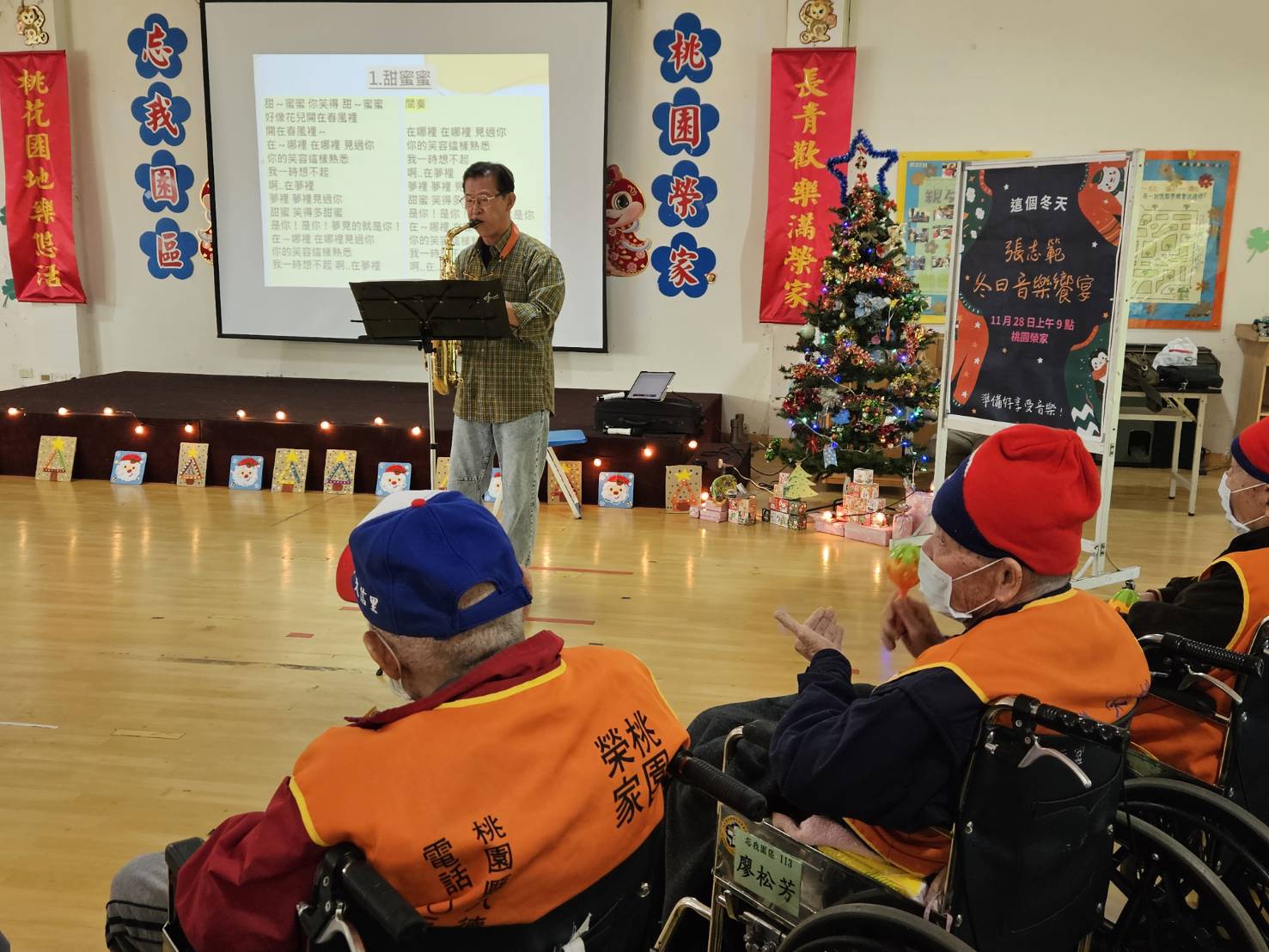 為讓失智長輩在初冬時節感受音樂療癒的溫暖氛圍,張志範將軍於(28)日前往桃園榮家失智園區,以薩克斯風帶來一場動人的「初冬音樂饗宴」。演奏曲目涵蓋經典國語老歌、台語金曲、民歌及流行歌曲。熟悉的旋律一下,園區內的失智長輩紛紛跟著節拍輕敲、哼唱,甚至開心點歌,場面溫馨熱鬧。