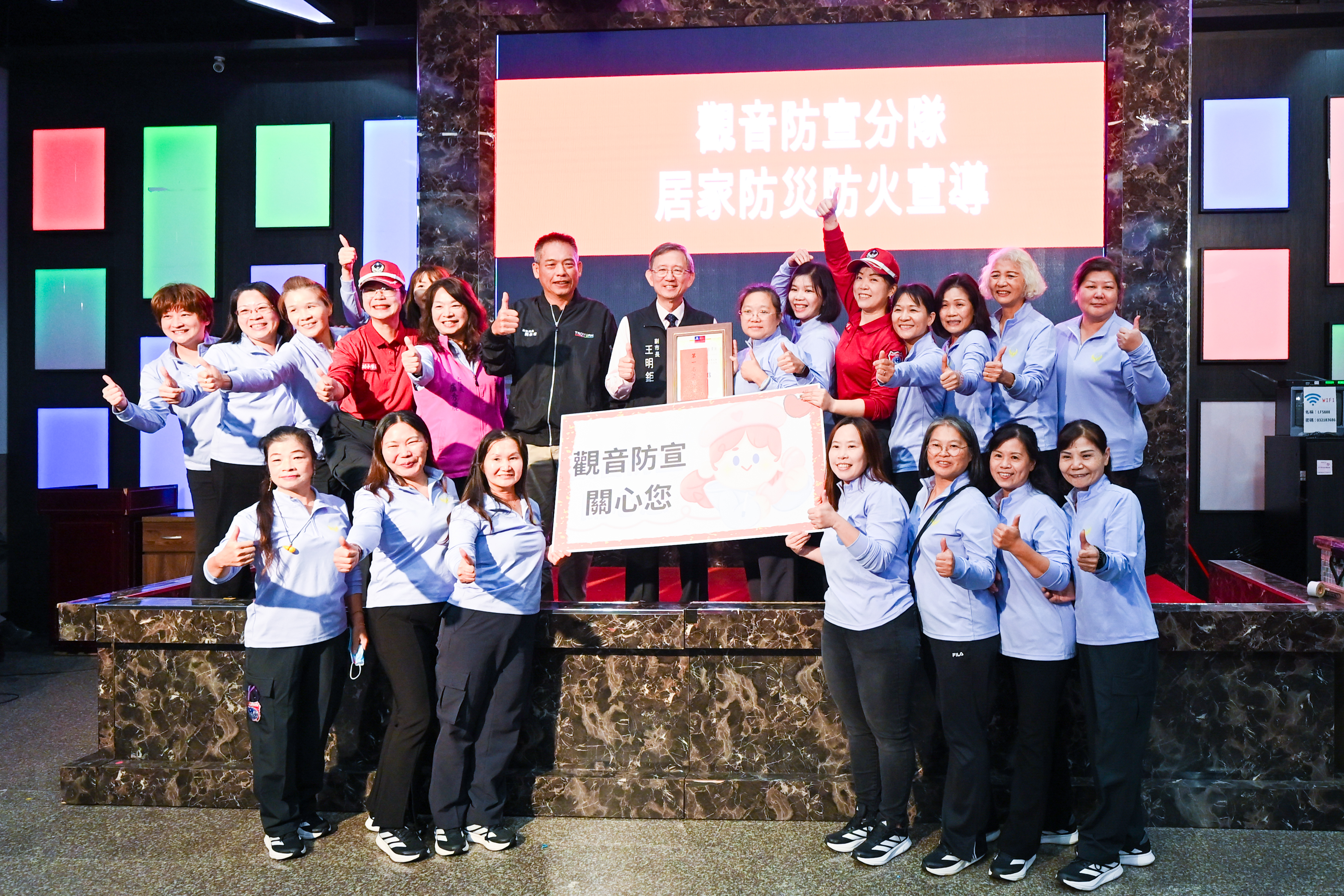 今日包括市議員段樹文、市府消防局長龔永信、八德區長蔡豊展、防火宣導大隊大隊長盧秀麗等均一同出席活動。