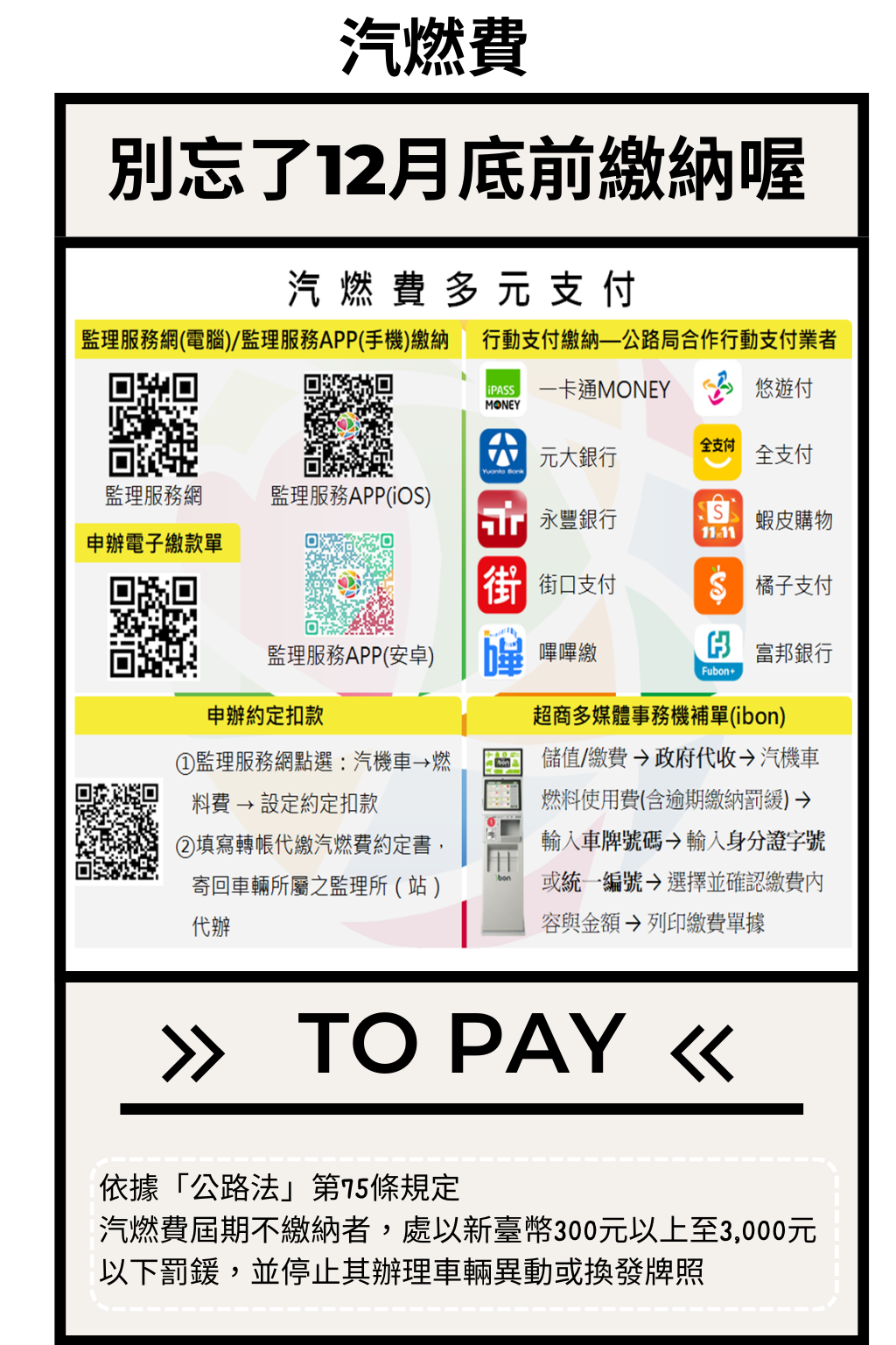 汽燃費別忘了12月底前繳納喔!