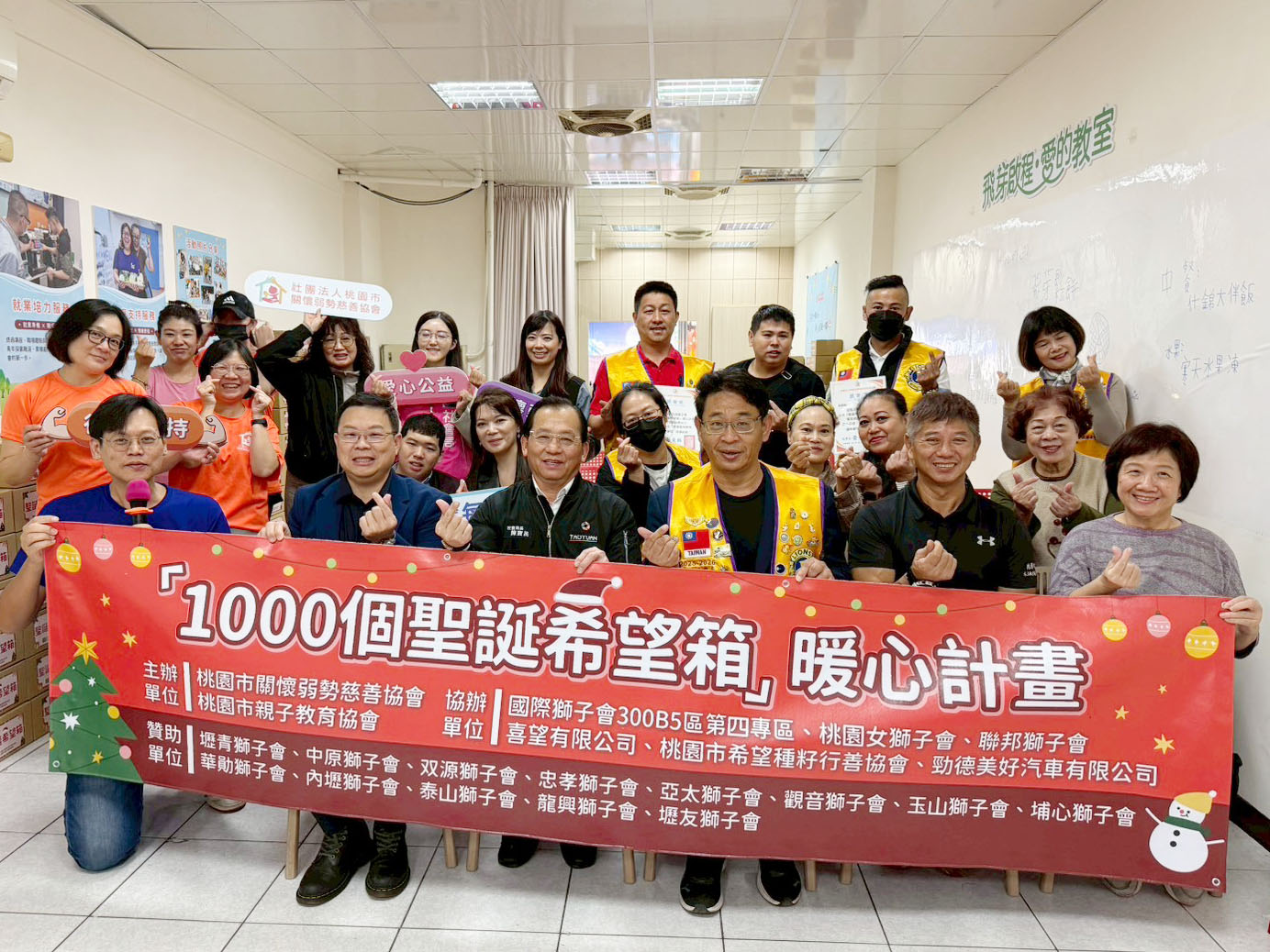 本次計畫獲得多個民間團體支持,包括國際獅子會300B5區第四專區、桃園女獅子會、聯邦獅子會、喜望有限公司、桃園市希望種籽行善協會、勁德美好汽車有限公司等,共同為孩子打造更有溫度的聖誕節。