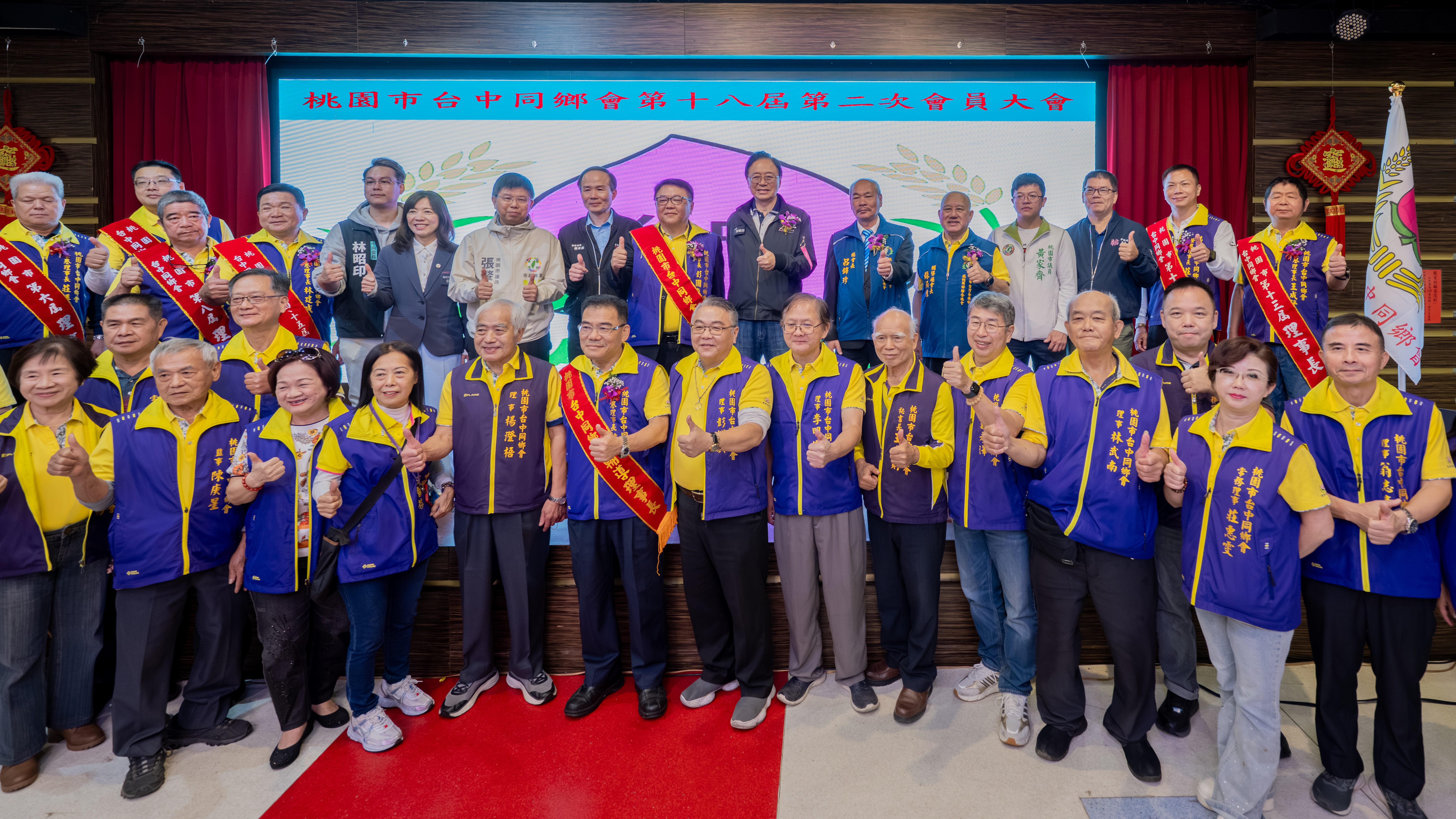 桃園市長張善政今(20)日中午前往中壢區,出席「桃園市台中同鄉會第18屆第2次會員大會」。張市長表示,桃園市台中同鄉會自成立以來已走過30年歷程,長期凝聚在桃園打拚的台中鄉親情感,展現深厚的向心力與互助精神,並在公益服務與社會關懷上持續投入,感謝台中同鄉會凝聚鄉情與公益貢獻,為地方注入溫暖力量。