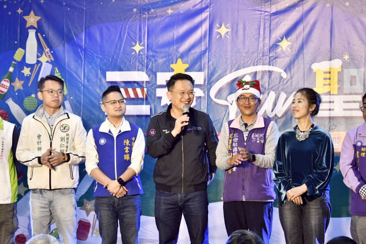 桃園市副市長蘇俊賓昨(20)日晚間前往平鎮區,出席「三安Fun聖誕·瓶安筷樂聖誕音樂節暨客家文創市集」。蘇俊賓表示,連續第三年參與三安社區發展協會舉辦的環保聖誕活動,發現活動規模年年擴大、內容愈發精彩,今年更特別透過廢棄酒瓶的再利用,體現「沒有垃圾,只有放錯位置的資源」之核心價值。