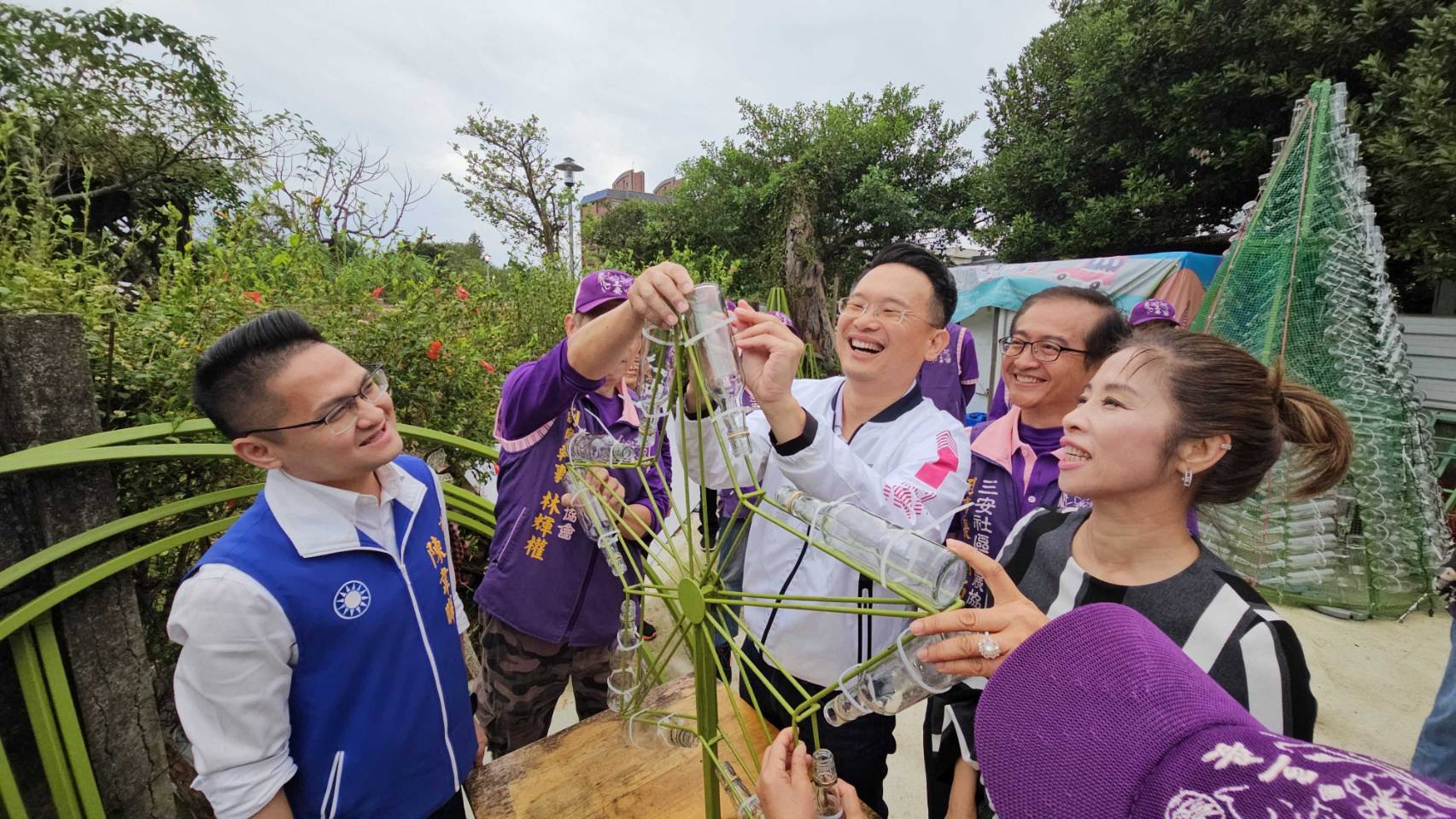 1500支廢玻璃瓶聖誕樹點亮平鎮! 蘇俊賓化身三安環保志工,力挺在地美學