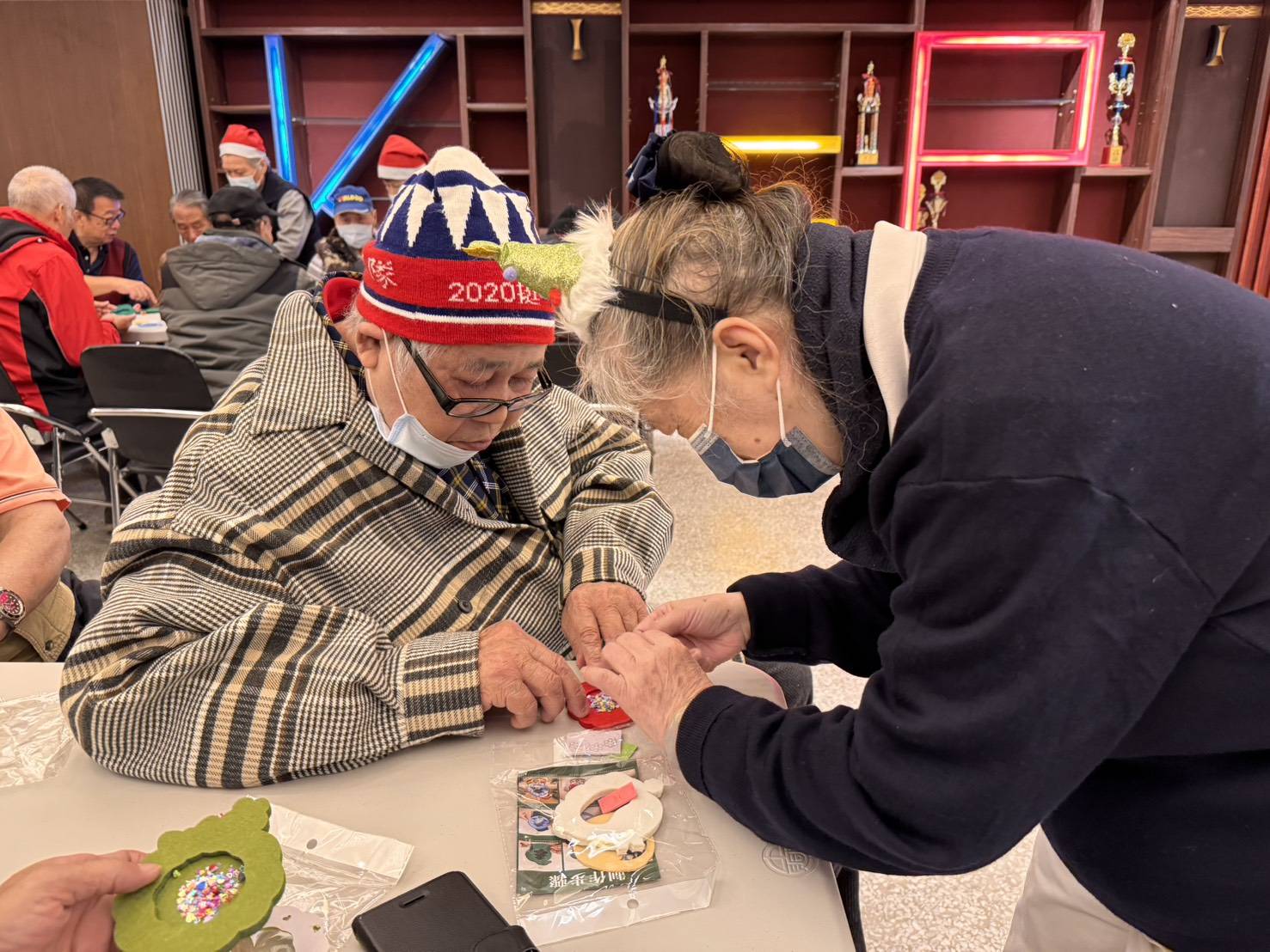 活動以手語律動揭開序幕,慈濟志工帶領長輩跟著節奏動動手、暖暖身,接著演唱雋永歌曲〈榕樹下〉,一邊教學手語、一邊邀請長輩輕聲哼唱,熟悉旋律喚起美好回憶,讓音樂與肢體律動成為最溫柔的陪伴。現場也準備節慶主題的聖誕吊飾手作,由志工陪伴長輩一一完成,迎接充滿祝福的聖誕佳節。長輩們臉上洋溢笑容,紛紛表示「跟著唱、跟著比手語,心情很放鬆」、「動手做聖誕吊飾很有趣」,活動充滿溫暖互動。