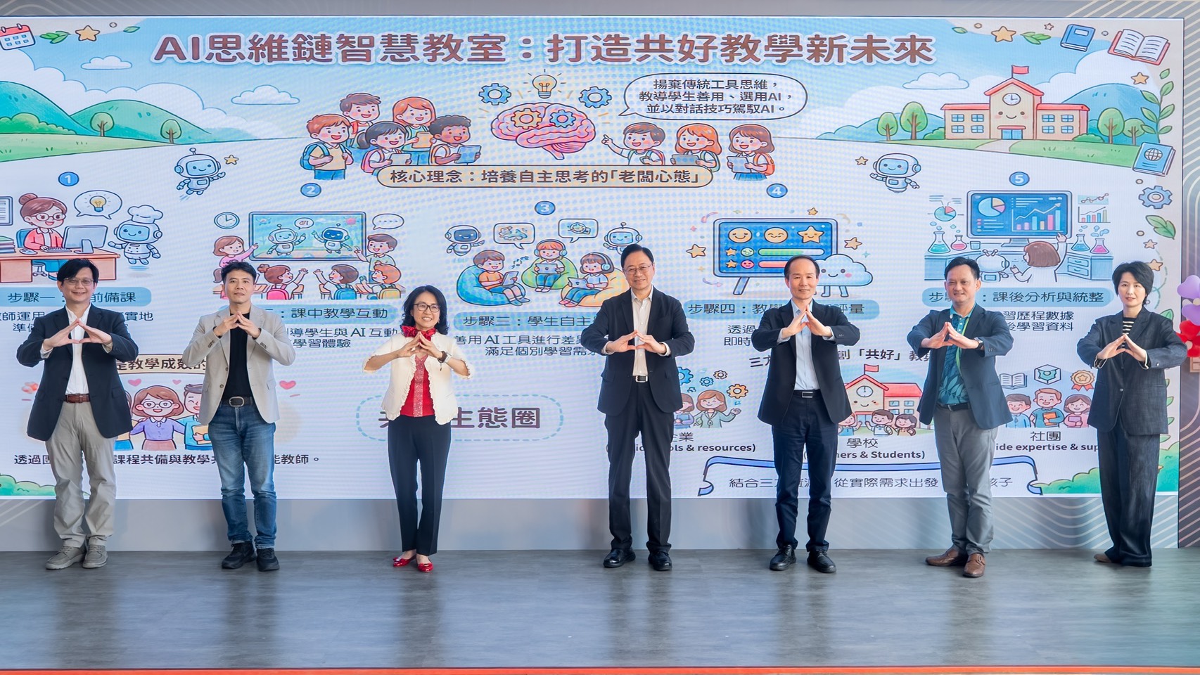 華碩文教基金會執行長魏杏娟表示,基金會成立18年來始終致力於推廣科技教育,面對當前的AI浪潮,核心目標是協助孩子從小建立正確的AI素養。魏執行長強調,AI的角色並非取代思考,而是作為輔助工具來激發孩子的創造力;AI智慧教室的啟用,不僅能為教師提供多元且數位化的教學媒材,更為學生構築了高科技學習環境,期盼與各界攜手打造教育創新的共好生態圈。