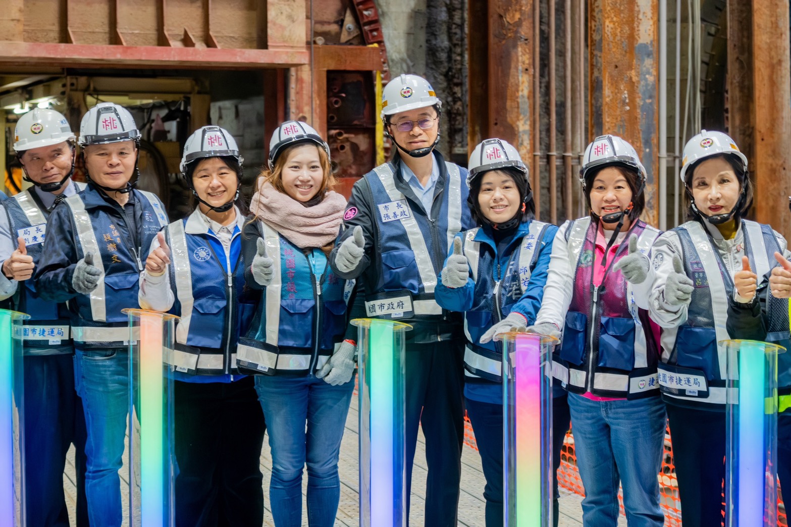 桃園市長張善政今(30)日下午前往八德區,視察桃園捷運綠線八德段潛盾機啟動發進。張市長表示,桃園捷運綠線自前(112)年3月在巧克力站(G03站)啟動八德區第一部潛盾機以來,歷經2年9個月,今日正式啟動第7部潛盾機鑽掘作業,造就國內單一工程同時有7部潛盾機同步在地底掘進的紀錄,並持續施工至116年完成全數隧道,力拚119年完成全線通車。