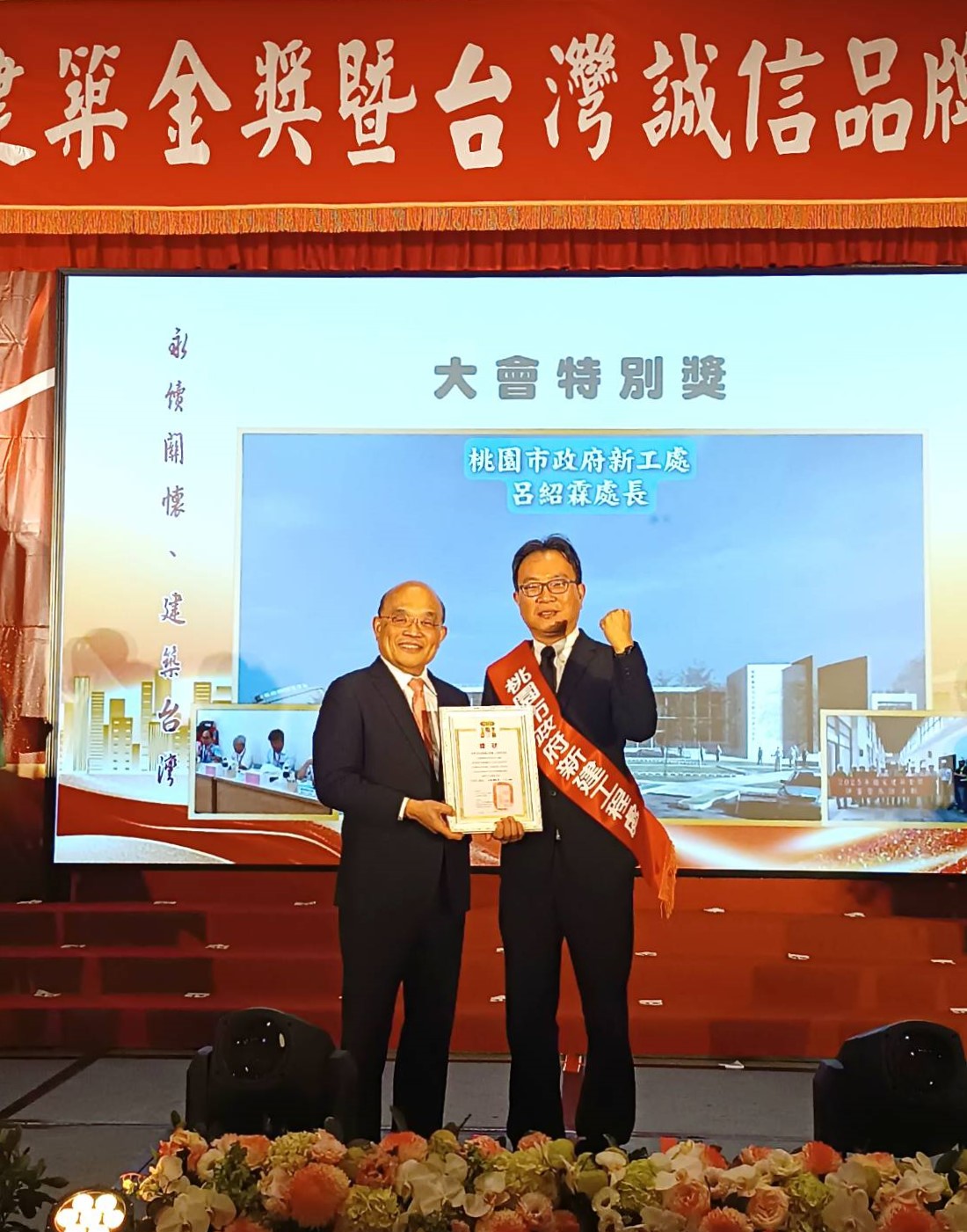 新工處處長呂紹霖(右)榮獲「大會特別獎」↑
