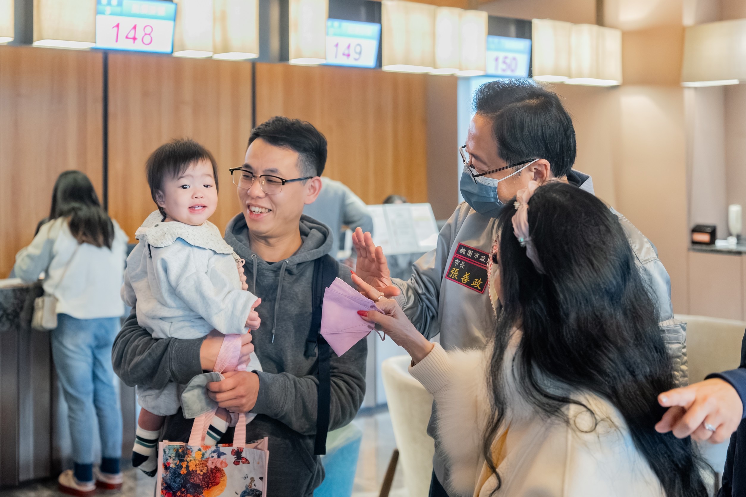 桃園市長張善政今(1)日上午前往桃園區探望元旦寶寶並致贈桃園乖寶包作為新生兒賀禮。張市長表示,桃園為六都中唯一人口自然增加正成長的城市,粗出生率達7‰,今日預估將有65位新生兒成為桃園市民,市府將持續推動婦幼友善政策,讓媽媽及新生兒皆能獲得完善的健康保障,為桃園的孩子打造安心成長的友善環境。