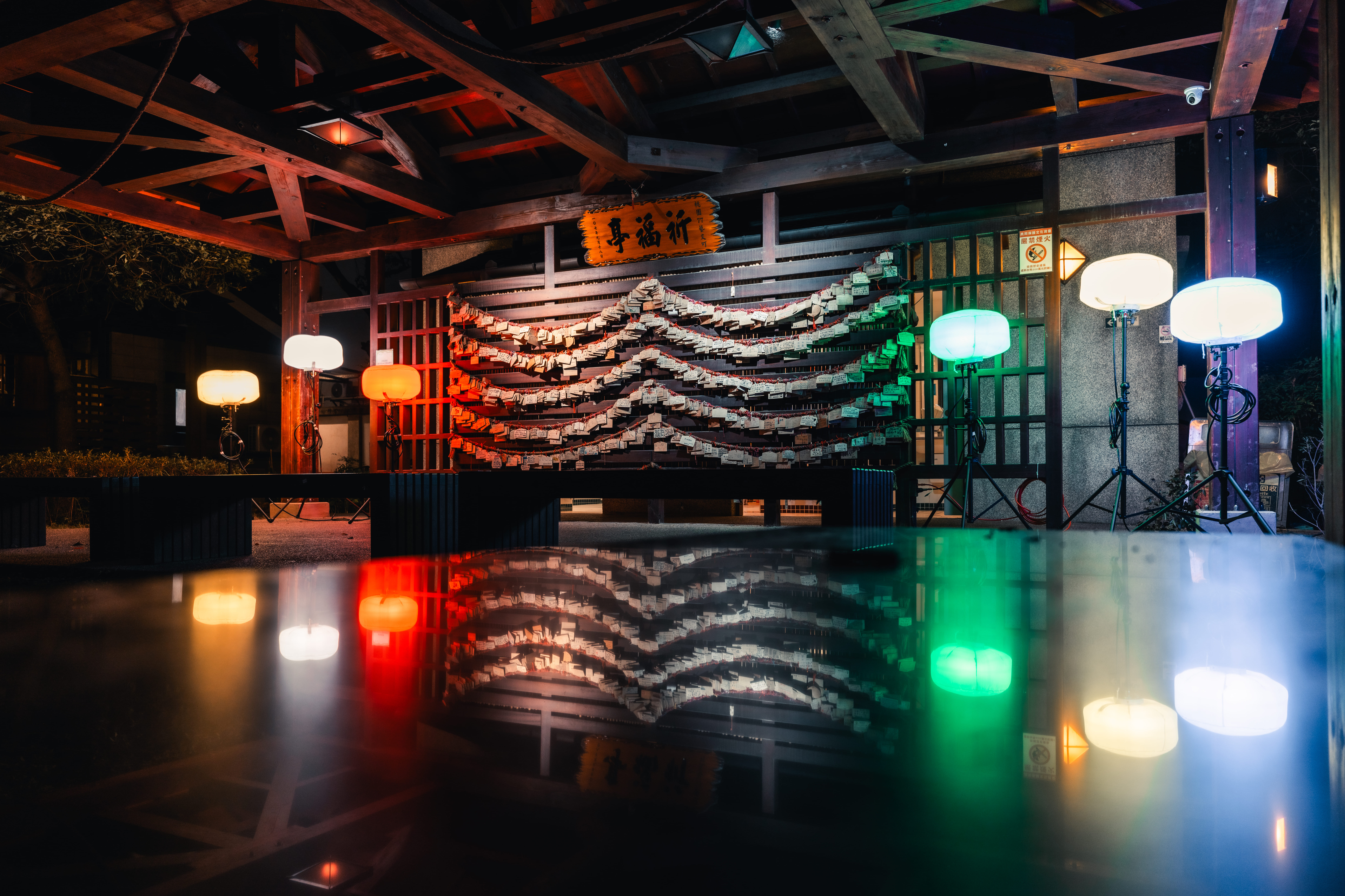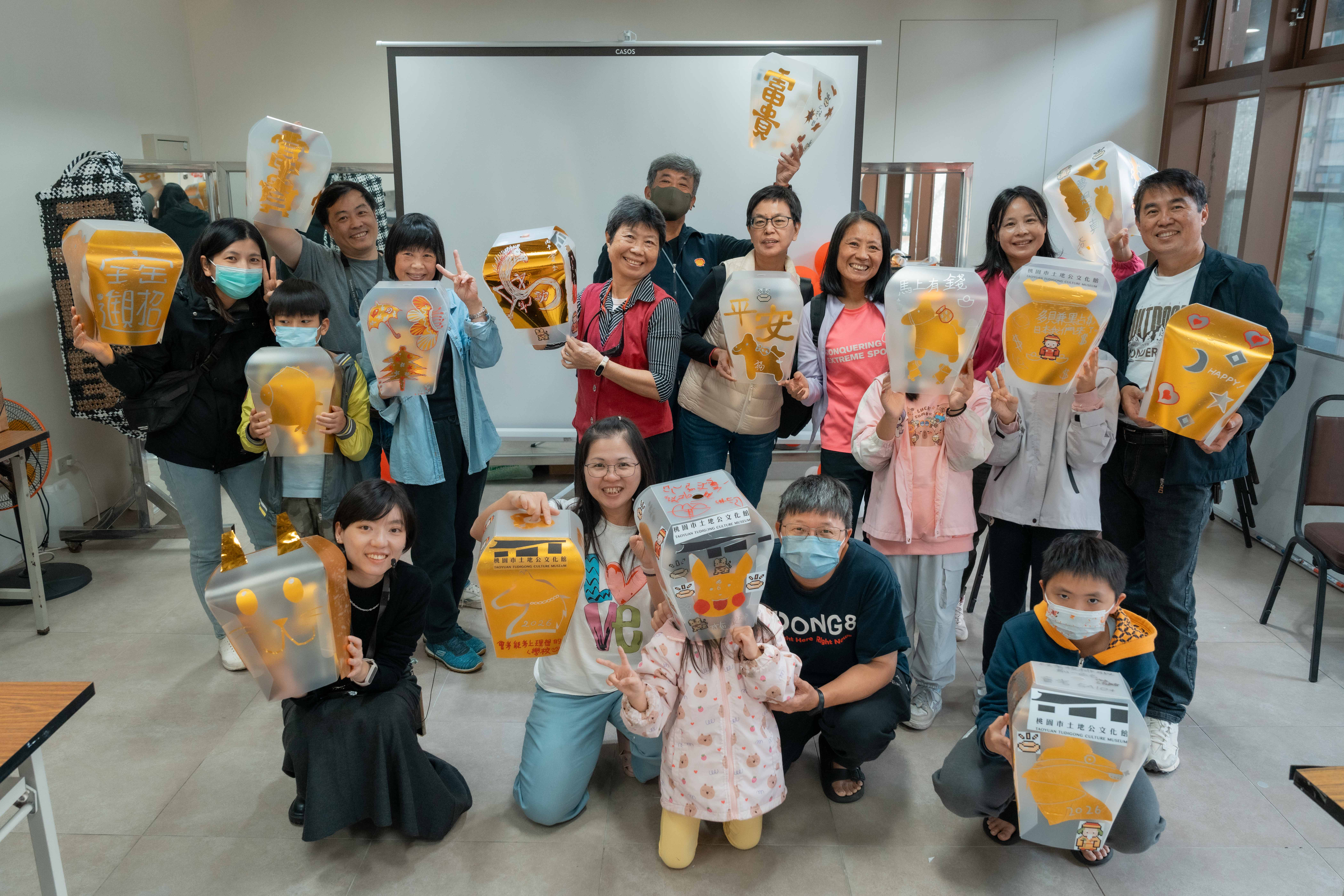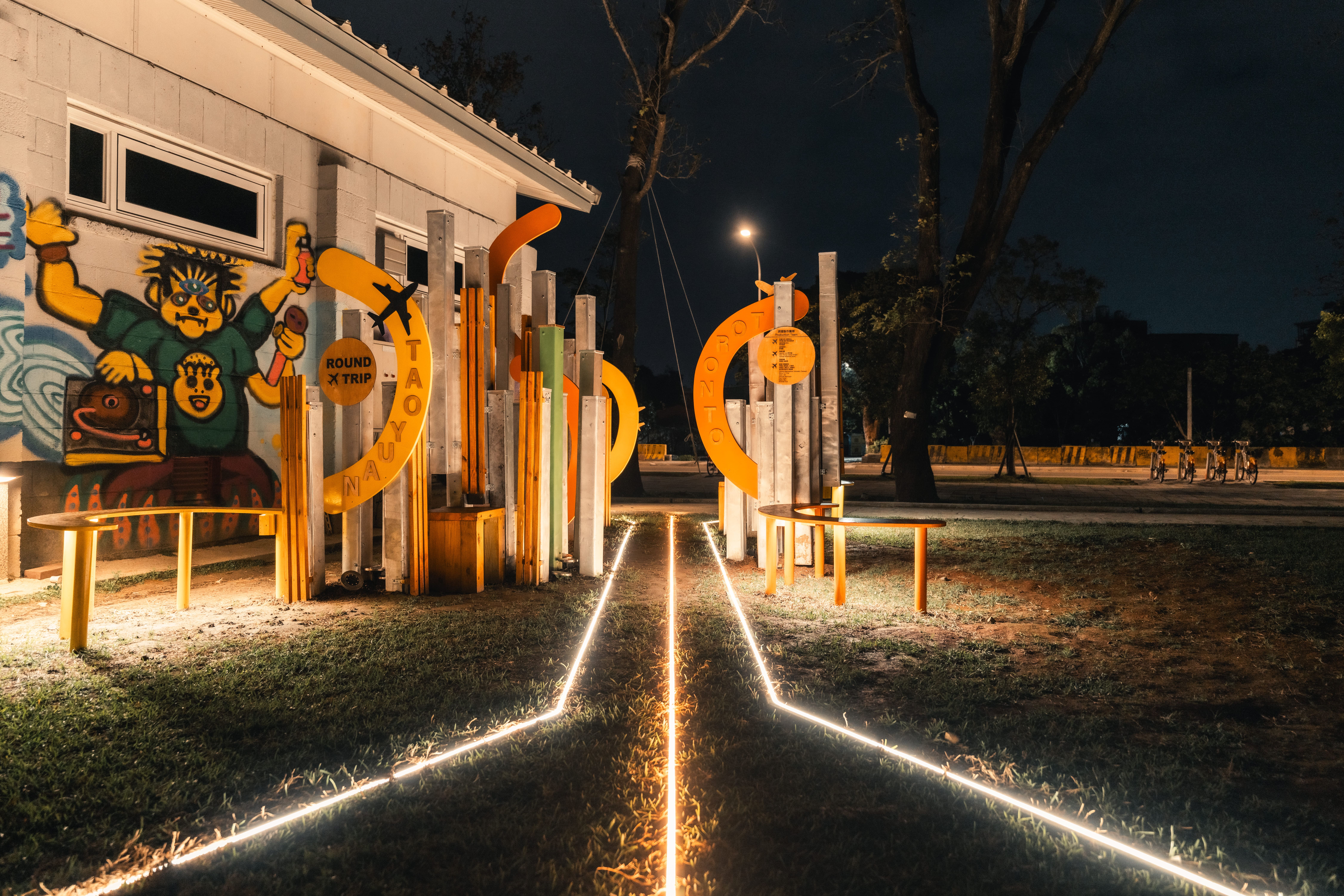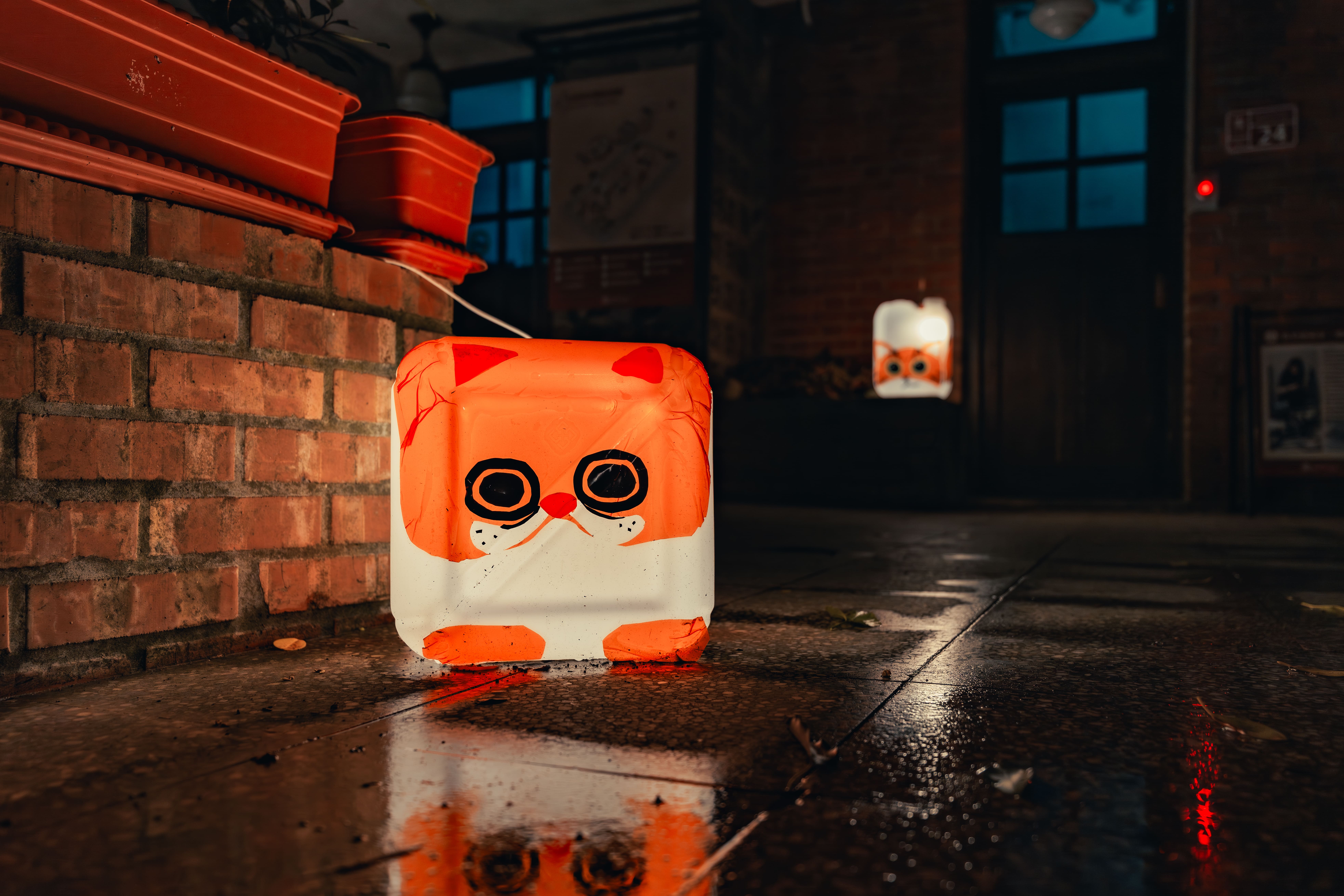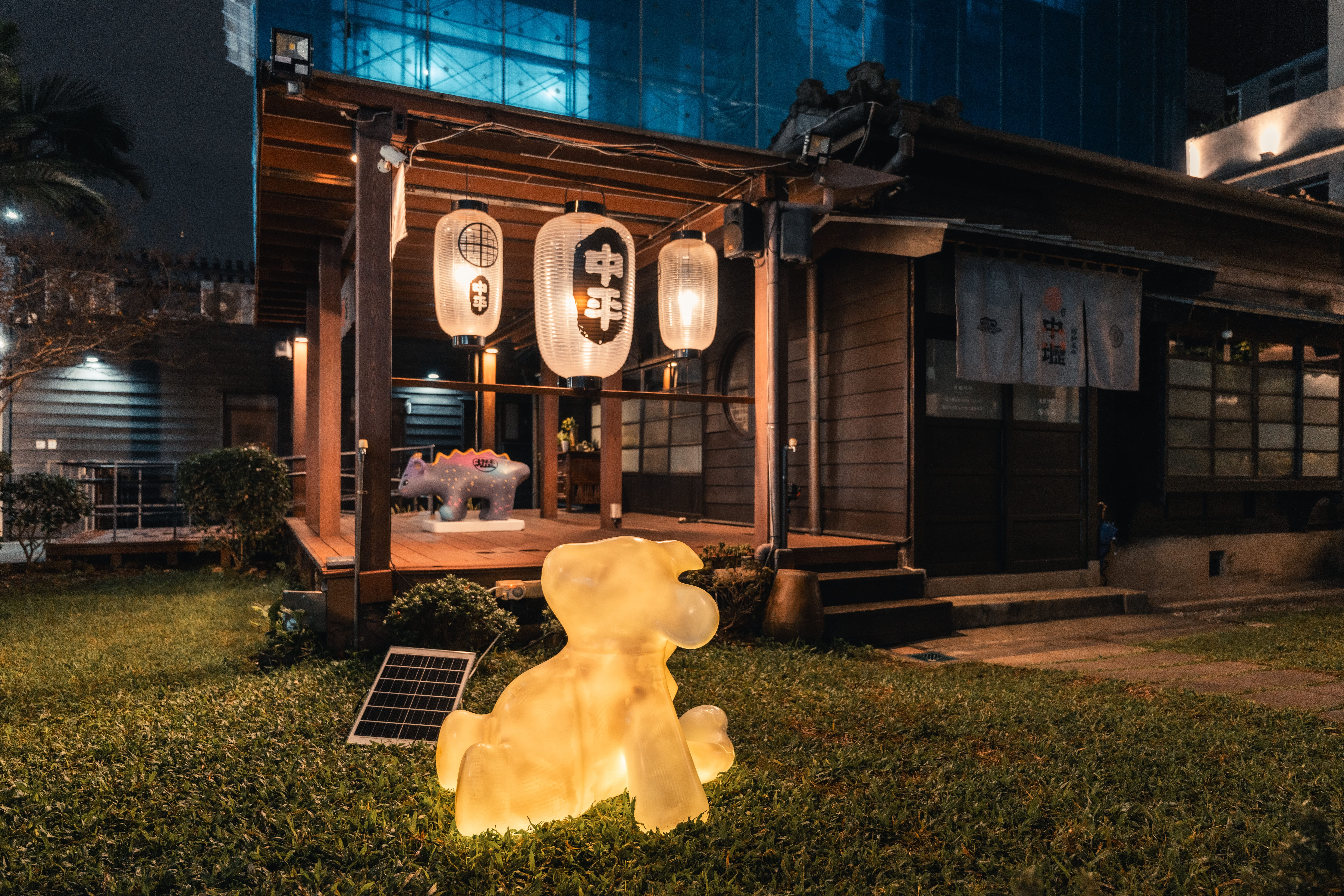 活動現場亦安排了燈飾成果展示,呈現各館舍因應自身場域特色所發展的創作形式。中平路故事館以守護獸角色延伸燈光造景,展現年輕世代的城市想像;楊梅故事園區將居民家中閒置菜刀轉化為書本造型燈具,結合「廚房記憶」故事,映照地方生活情感;太武新村眷村文化園區以孩童彩繪與回收材質打造三花貓燈飾,呈現共生共榮的溫暖光景;米倉劇場則邀請日本藝術家鈴木泰人,以再生紙燈罩與居民故事構築夜間「無人劇場」,展現老城區獨有的靜謐氛圍。