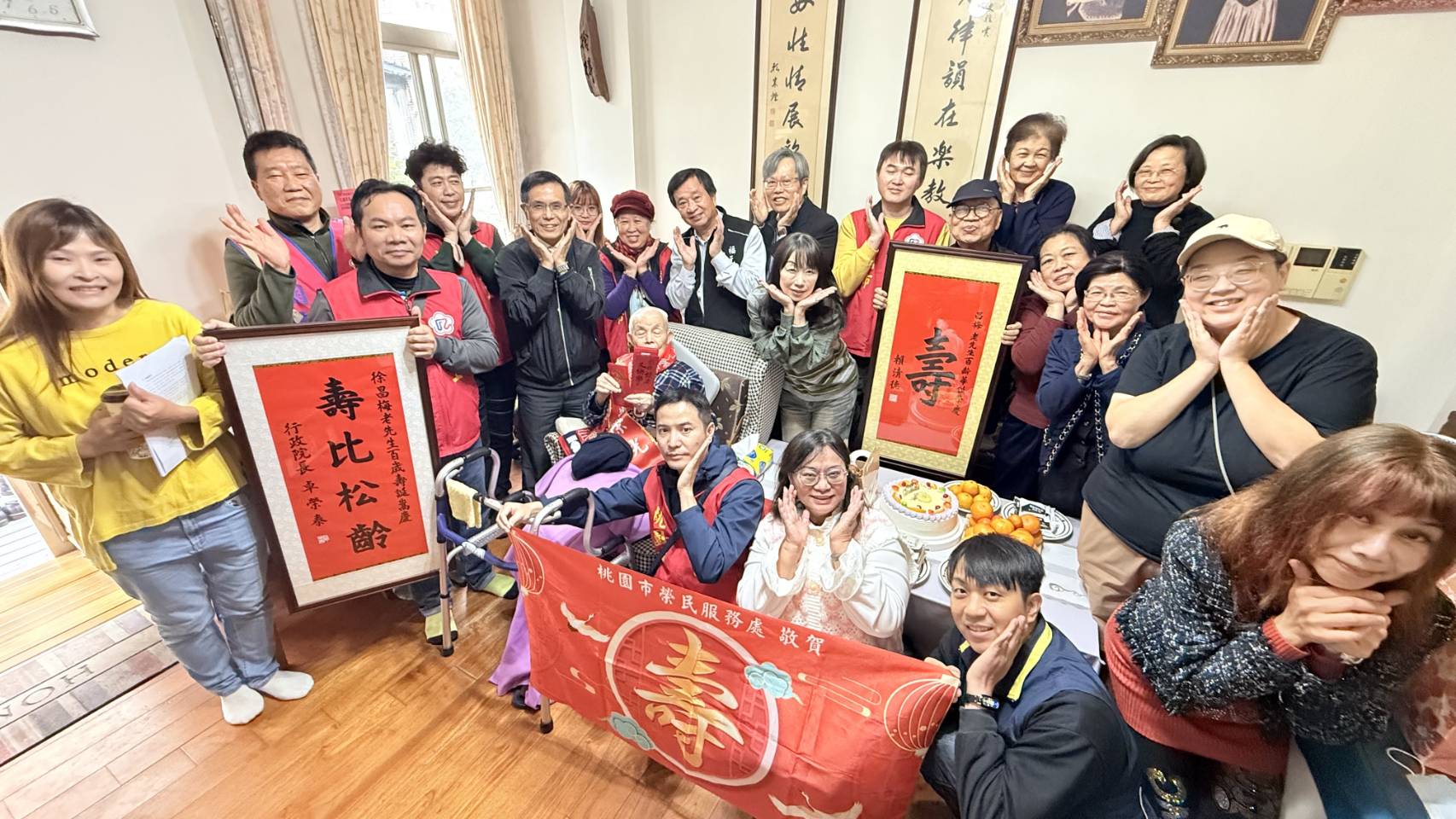 為表達對百歲榮民的崇高敬意與關懷,桃園市榮民服務處於1月19日前往徐昌梅爺爺府上,隆重辦理百歲祝壽活動,由鄭源敏處長親自率領輔導員、社區服務組長及榮欣志工團隊前往祝賀,並邀請福元里里長楊瑞麟共襄盛舉。現場準備總統及行政院長祝賀壽屏、壽糕等賀禮,由鄭處長親自為徐爺爺披上榮光彩帶,並代表輔導會嚴主委為其配戴金項鍊,感謝徐爺爺一生為國付出、無私奉獻的精神,致上最高敬意。