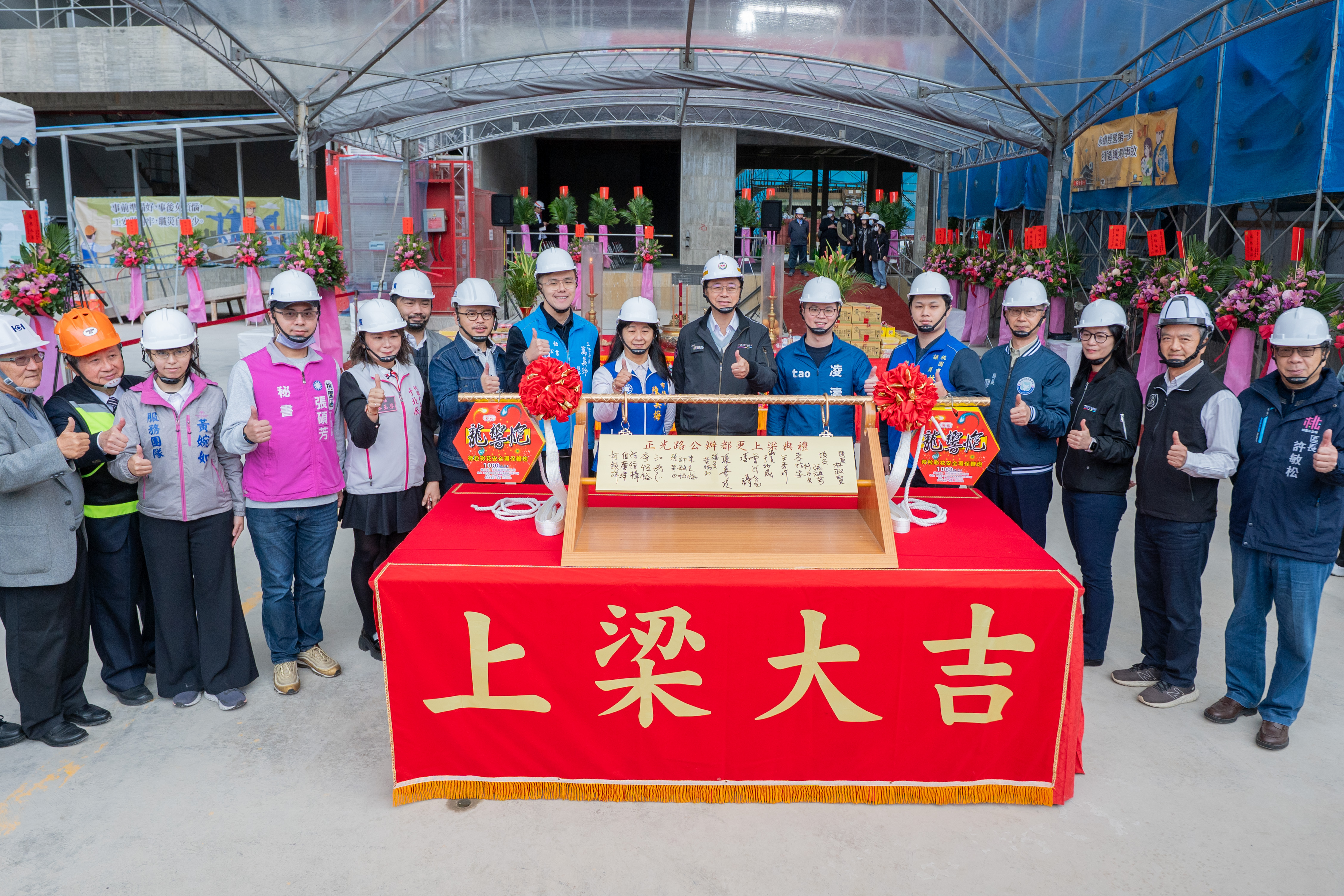 桃園市長張善政今(19)日上午前往桃園區,出席「正光路公辦都更上梁典禮」。張市長表示,正光路公辦都更是市府首件擔任實施者的都市更新案,歷經兩年半施工,結構體工程已大致完成,預計明(116)年6月完工。全案規劃興建2棟社會住宅及1棟警政大樓,其中255戶社宅將保留20%名額作為「婚育宅」,優先提供新婚2年內家庭、育(孕)有未成年子女及三代同堂家庭申請,最長入住年限達12年,落實桃園宜居城市願景。