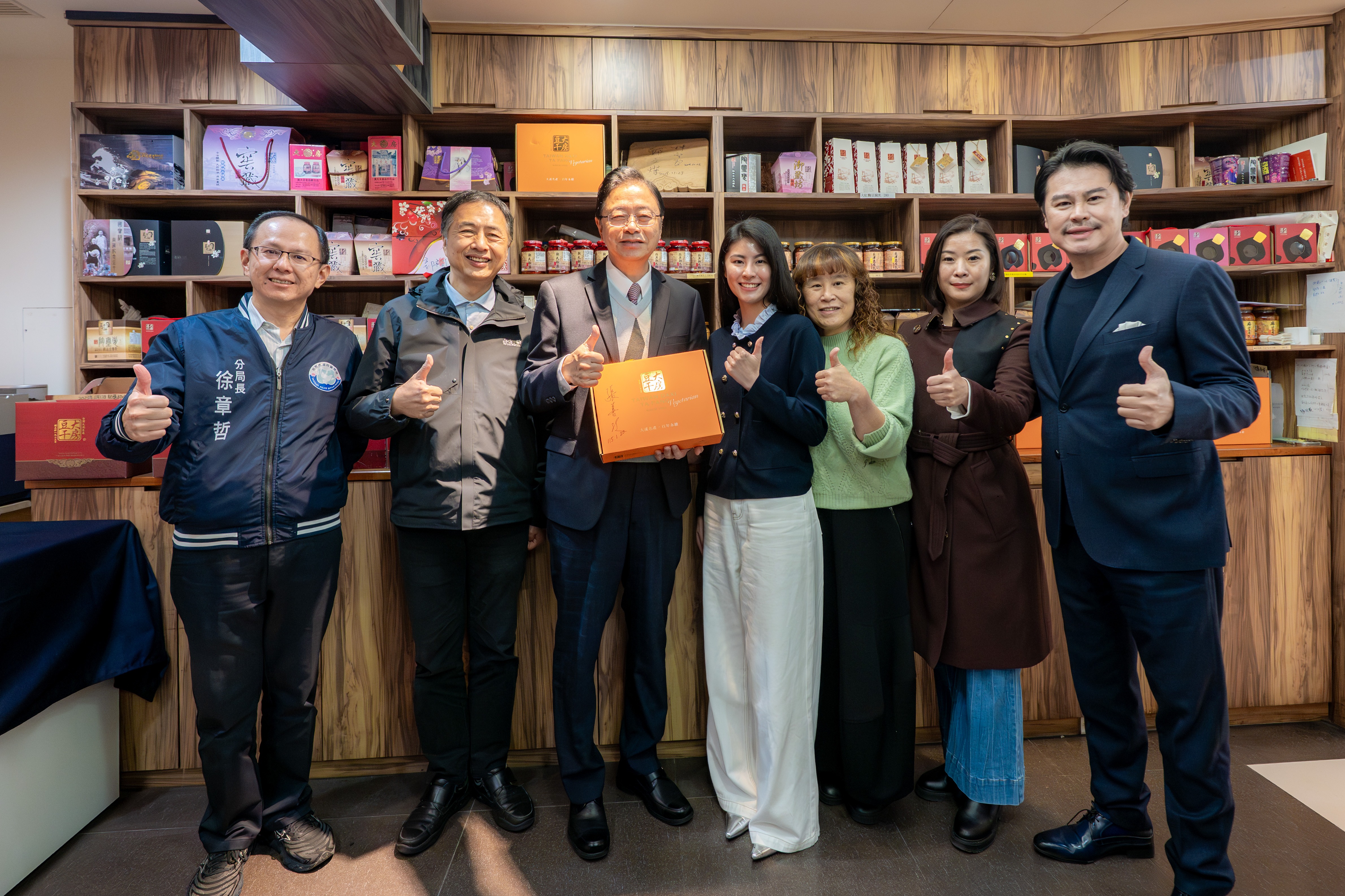 桃園市長張善政今(20)日上午前往大溪區,致贈大房食品股份有限公司「桃金百年老店」匾額,肯定大房豆干持續導入創新思維,將百年工藝與現代經營模式結合,展現老店轉型升級的典範,也期盼藉由今日表揚,帶動本市更多老店投入創新,共同形塑桃園老店品牌新價值。