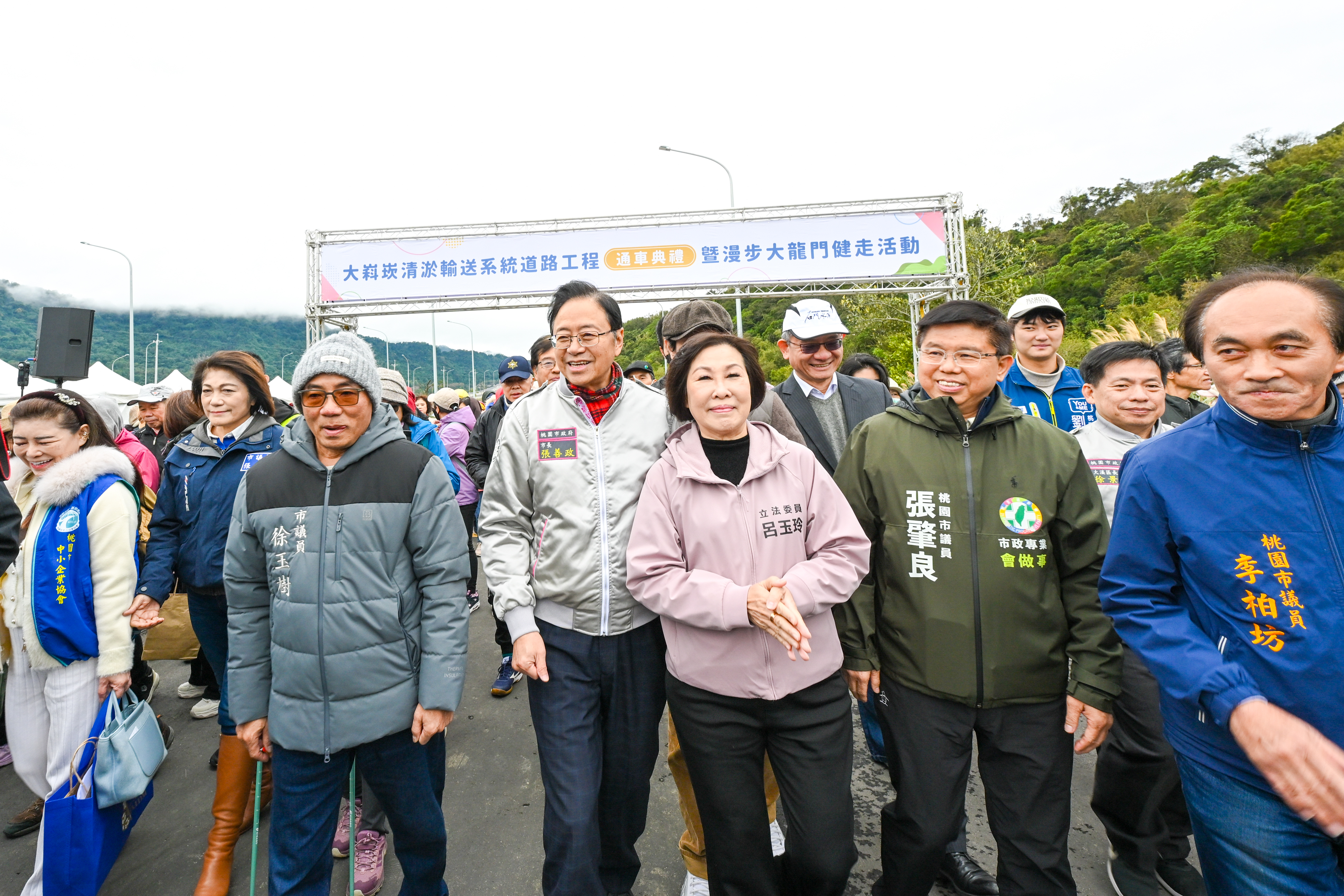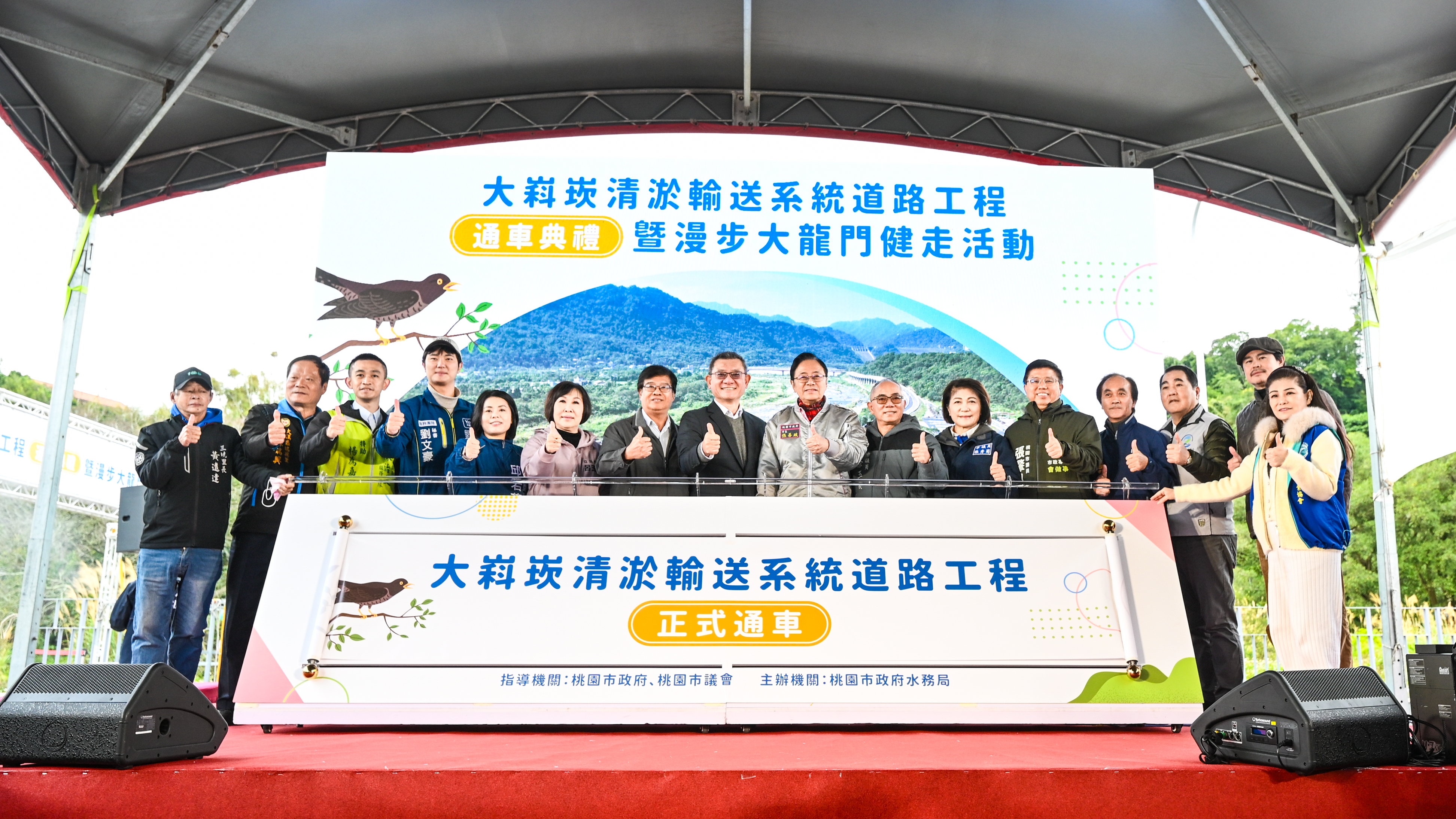 桃園市長張善政今(22)日上午前往龍潭區,出席「大嵙崁清淤輸送系統道路工程通車典禮暨漫步大龍門健走活動」。張市長表示,大嵙崁清淤輸送系統道路完工通車,將有效分流清淤車輛,降低對既有省道交通與行車安全的衝擊,亦能讓鄉親及遊客飽覽大漢溪沿岸風光,進一步帶動龍潭與大溪地區的觀光發展。