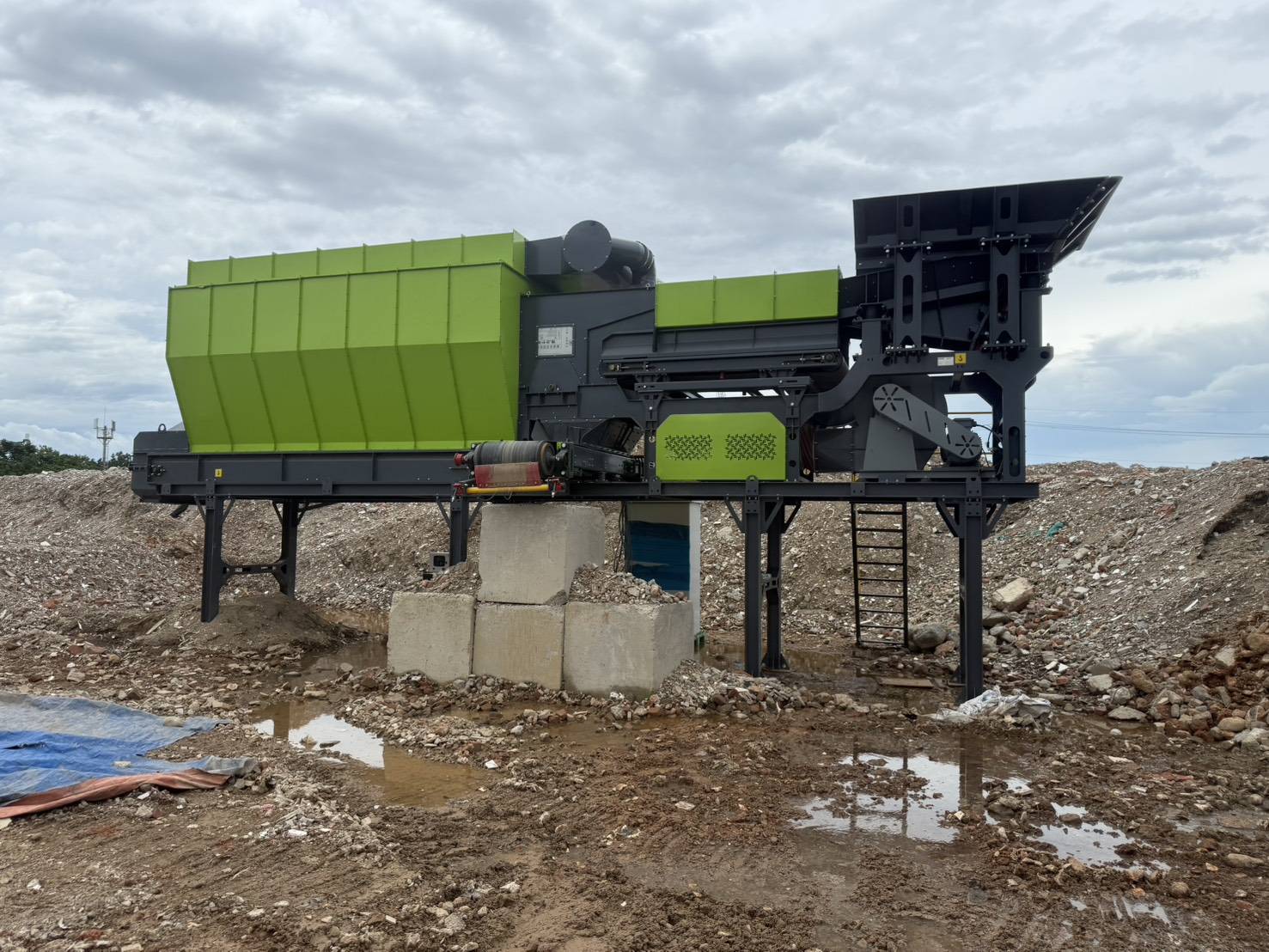 報導所指廠區,是依法申請並取得核可之「廢棄物再利用機構」,其法律性質與中壢體育園區非法棄置屬於刑事犯罪案件,兩者並不相同。本案於去(114)年7月間接獲民眾陳情後,本局即刻派員前往稽查。經查,該業者主要業務為收受廢磚塊,經破碎處理後,再製成空心磚產品。