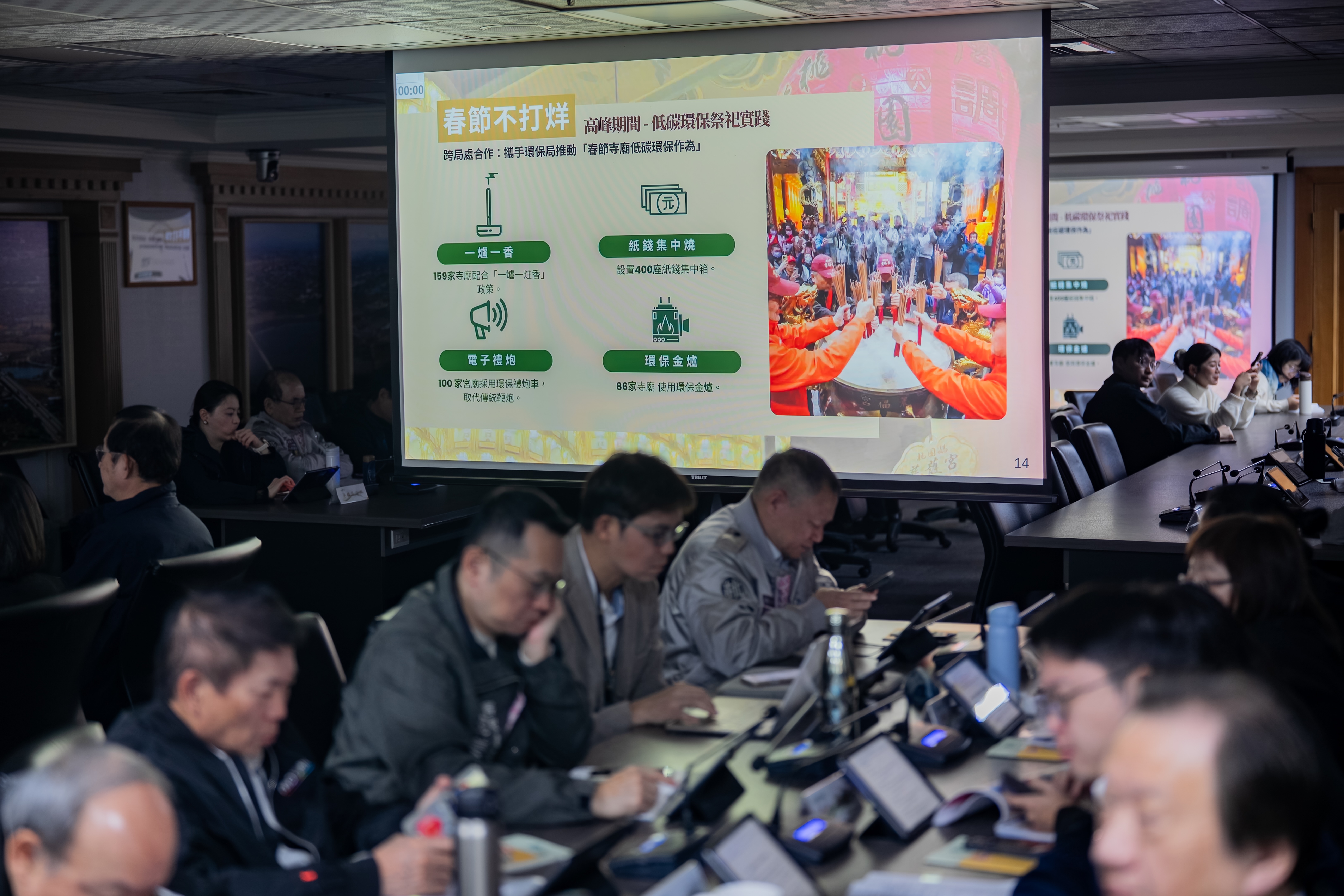 環保局表示,市府持續推動祭祀行為轉型,輔導全市288家寺廟響應一爐一炷香、環保金爐及多元代金等措施,並設置400座紙錢集中箱。統計114年成效,透過紙錢集中燒與代金制度,合計減少紙錢焚燒逾2,000公噸,換算減少碳排放約890公噸,且香枝與炮竹使用量均顯著下降,有效削減PM2.5等空污排放,展現具體的環境改善效益。