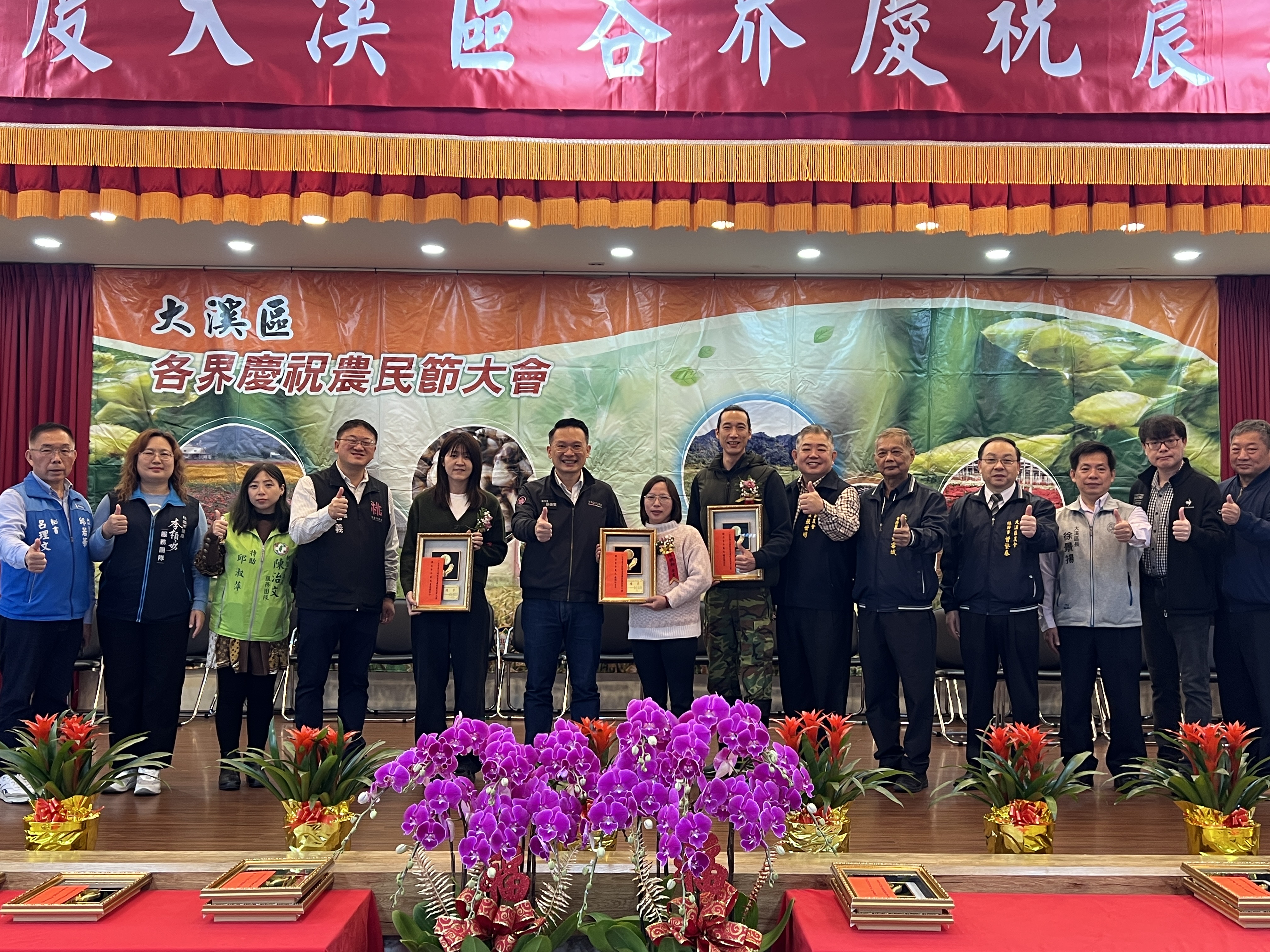 桃園市副市長蘇俊賓今(30)日出席「大溪區慶祝115年度農民節大會」,向長期辛勤耕耘、為地方農業付出的農友致上最高敬意,並肯定大溪農業在智慧化、品牌化及產銷合作上的亮眼成果。蘇俊賓表示,大溪地區農業資源豐富,生產作物涵蓋綠竹筍、韭菜、稻米、葉菜、花卉及雜糧等,其中大溪不僅是桃園市最大的綠竹筍產地,韭菜花更是北台灣最大的種植專區,長年來在農友努力與農會輔導下,建立穩定且具競爭力的農業基礎。