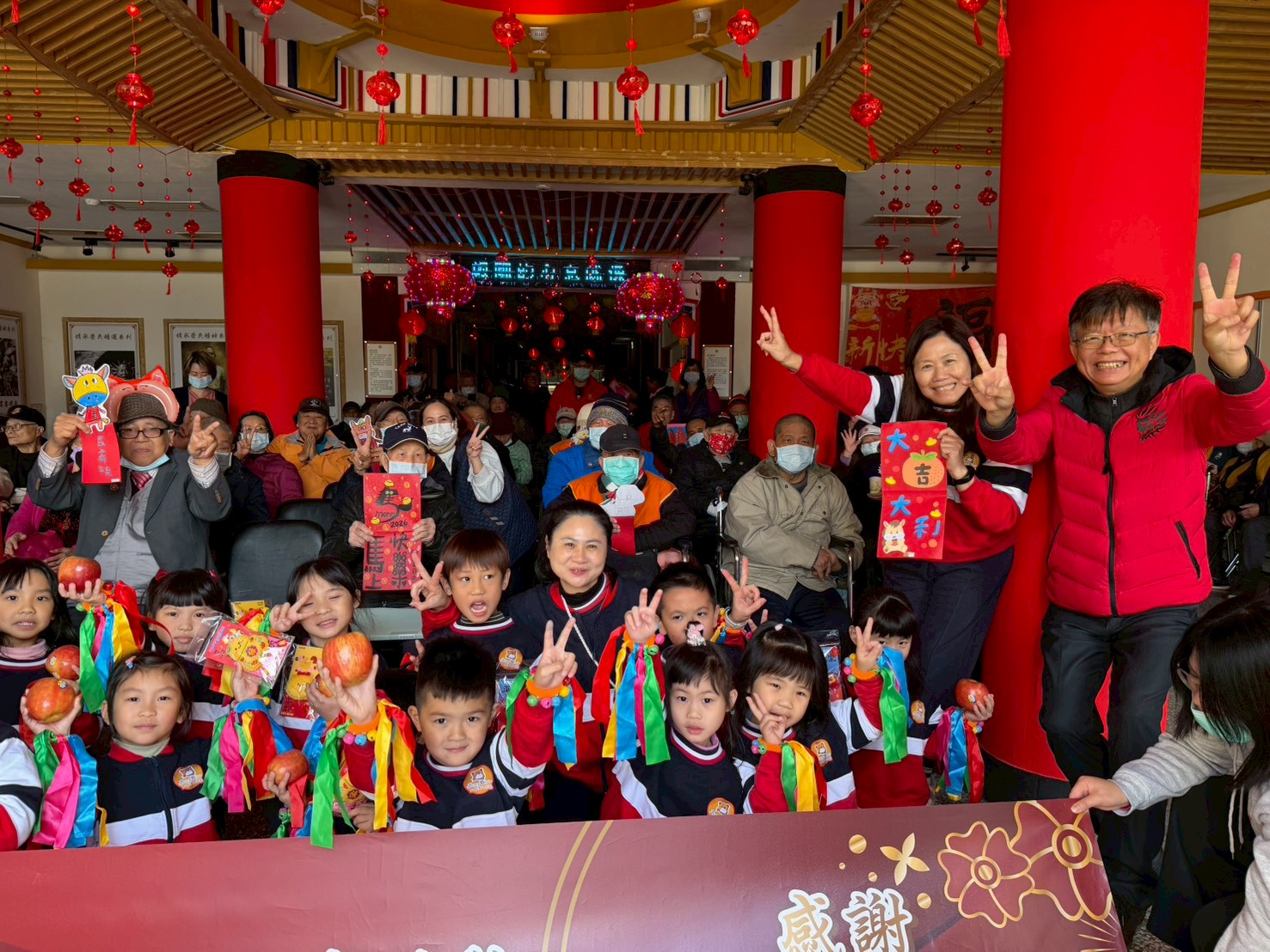 當燈籠齊亮的那一刻,現場瞬間被光彩與喜悅包圍,幸福與希望在每個人心中湧現。多位長輩溫馨回饋表示,看著燈火通明、孩子們圍繞身旁,彷彿回到過年團圓的時光,心中滿是感動與感謝。活動最後,老幼在繽紛燈籠下牽手共舞,一起隨著音樂迎接新年,畫面溫馨動人,洋溢滿滿幸福感。