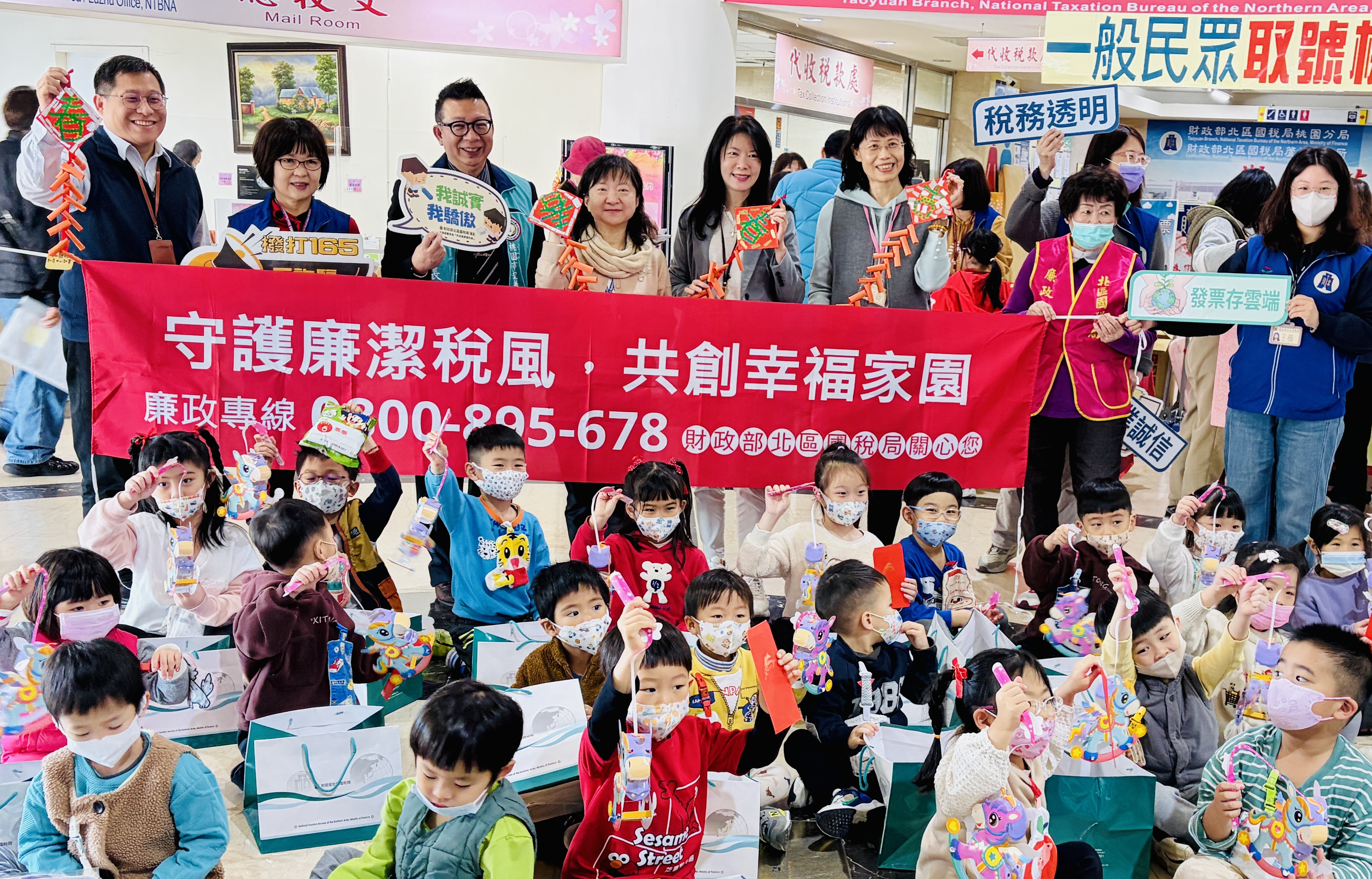(桃園訊)財政部北區國稅局為推動反貪倡廉及推廣雲端發票,特於115年2月3日偕所屬桃園分局、板橋分局及新竹分局舉辦「馬到成功賀元宵,廉政反貪賀福門」元宵節廉政暨租稅宣導活動。