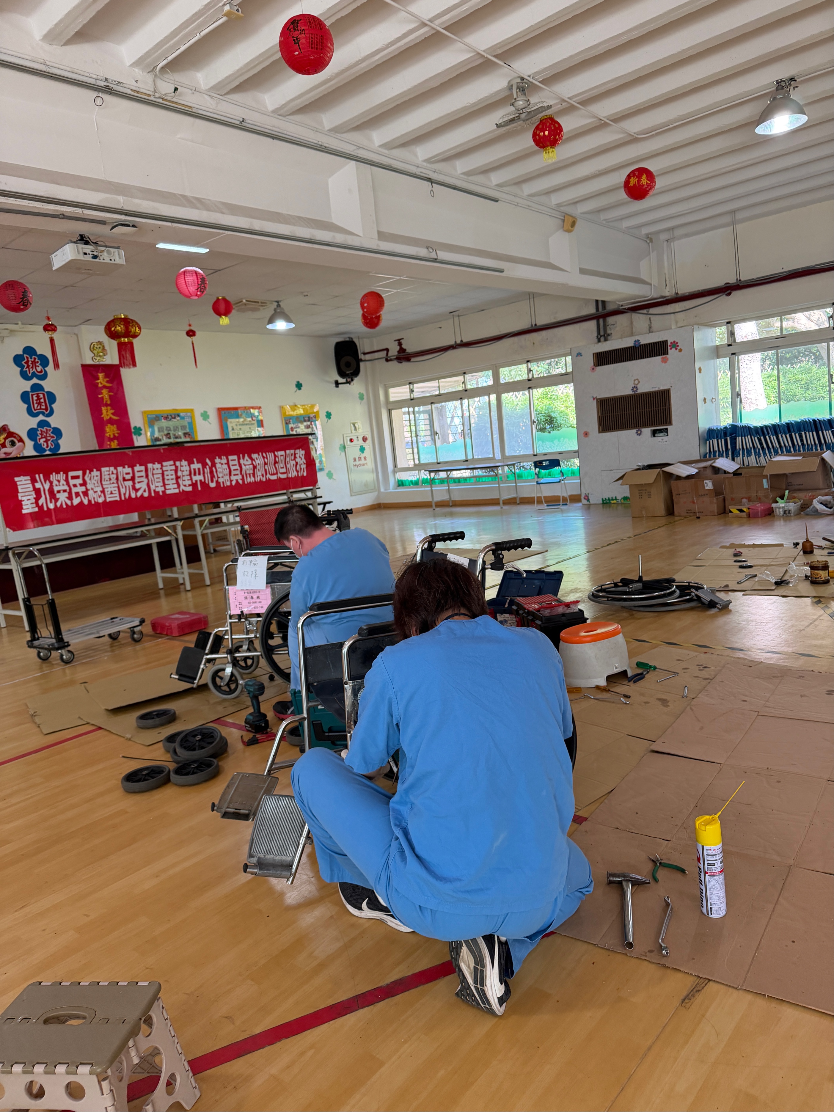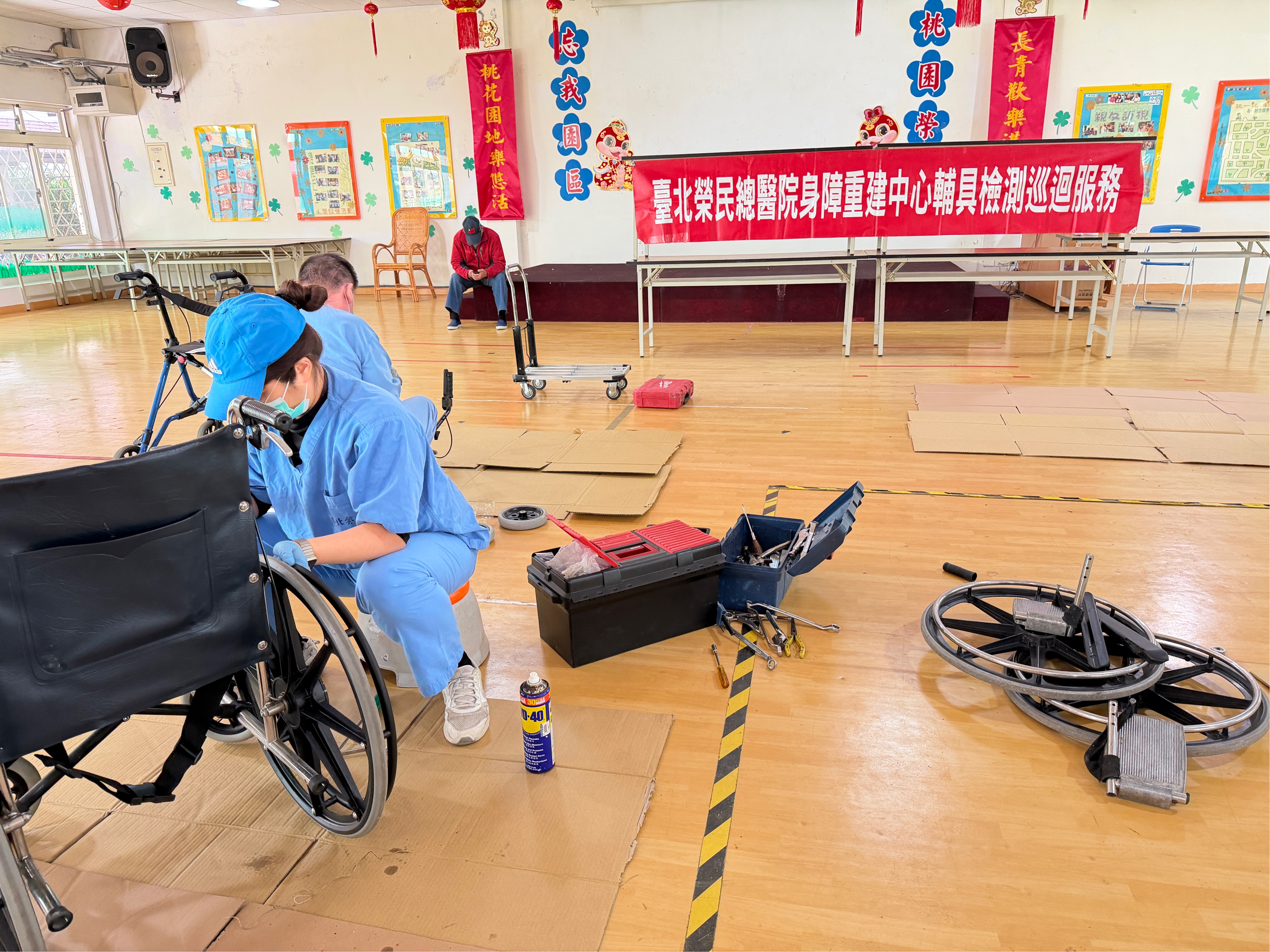為確保住民輔具使用安全與功能完善,於115年2月3日桃園榮家攜手北榮身障中心辦理年度輔具巡迴維修與保養服務,讓住民在熟悉得生活環境中即可完成輔具檢修,減少奔波不便。