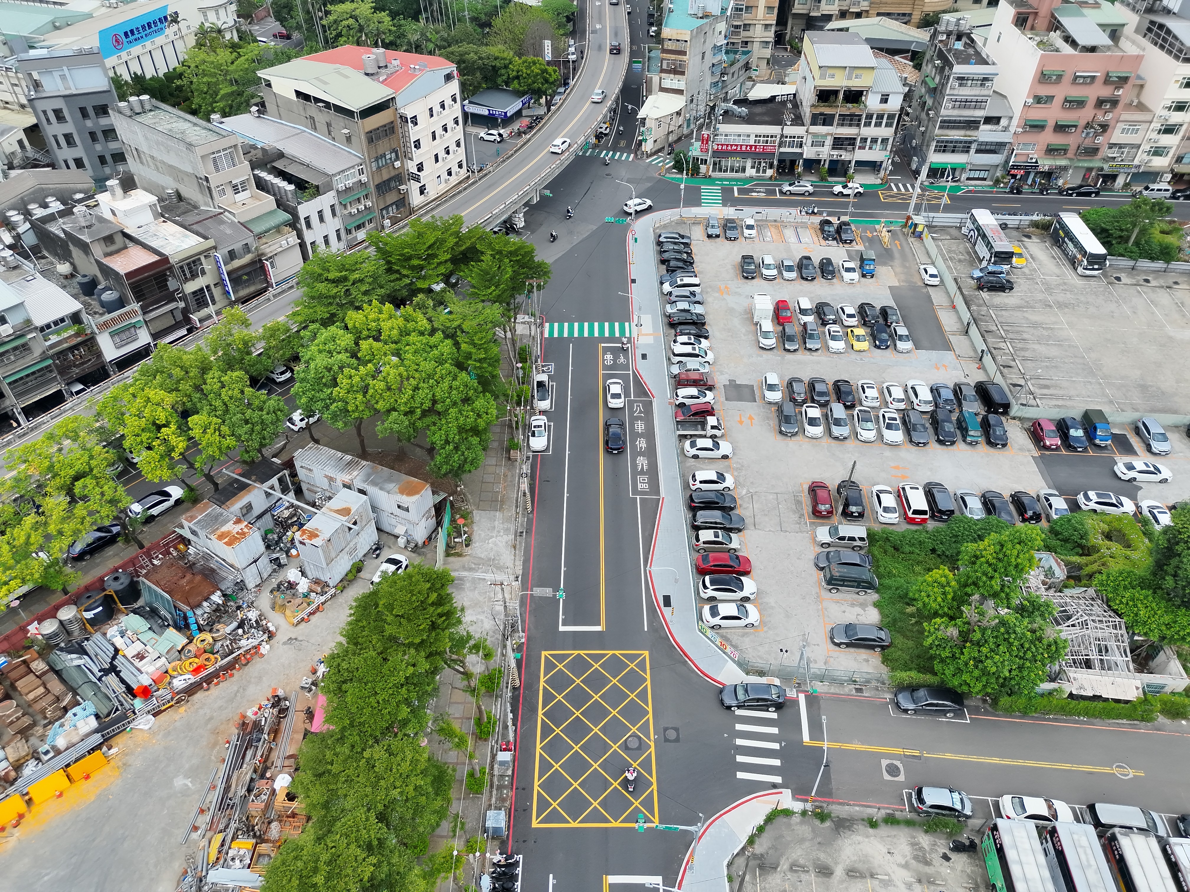 •全台首創「三心圓」設計: 借鏡國外經驗,優化路口轉彎半徑,使路緣曲線更貼合車輛軌跡,有效降低內輪差風險,並極大化行人停等空間。