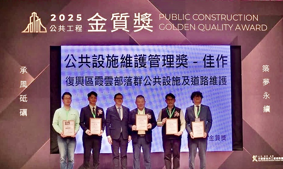 ↑「復興區霞雲部落群公共設施及道路維護」榮獲公共設施維護管理獎佳作頒獎