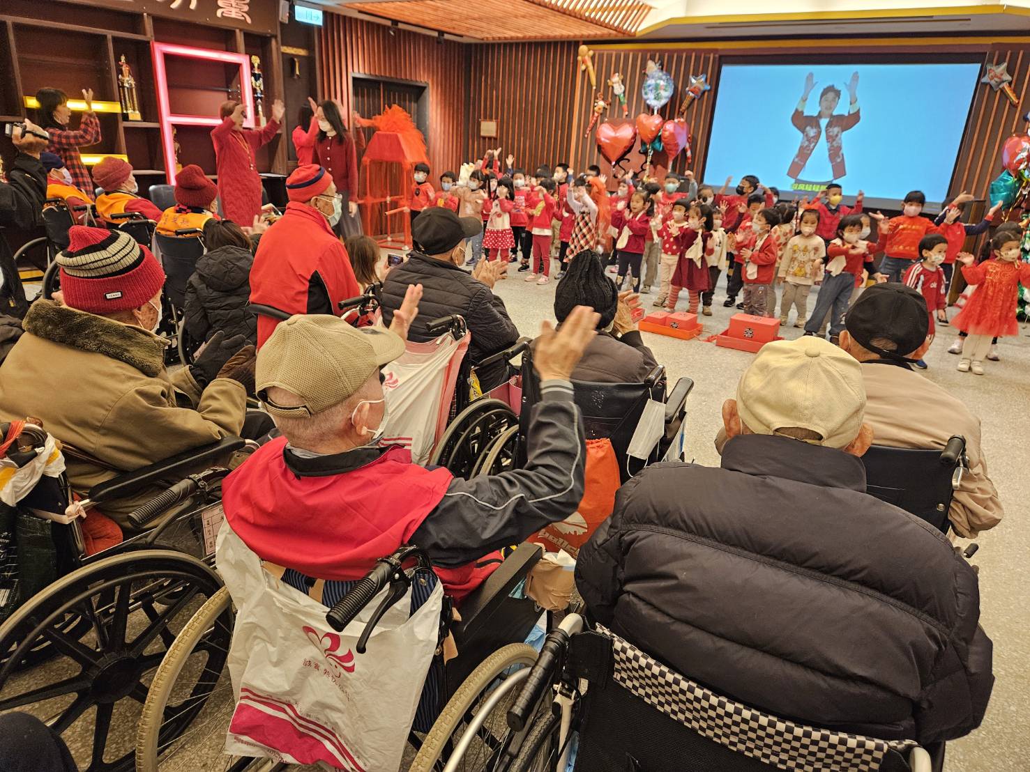 小朋友敲鑼打鼓進到家區,搭配充滿年節氣息的新年歌曲,萌娃們天真無邪的模樣,引來長輩們掌聲不斷、笑容滿面。孩子們更以稚嫩卻真誠的童言童語,向爺爺奶奶拜早年,一聲聲祝福深深融化長輩的心,現場洋溢著幸福與感動。為感謝小朋友們用心準備的演出,桃園榮家也貼心準備新年小禮物贈送給每位孩子,在歡笑與祝福的交換中,展現老幼同迎新年的溫馨畫面,讓彼此的心更加靠近。
