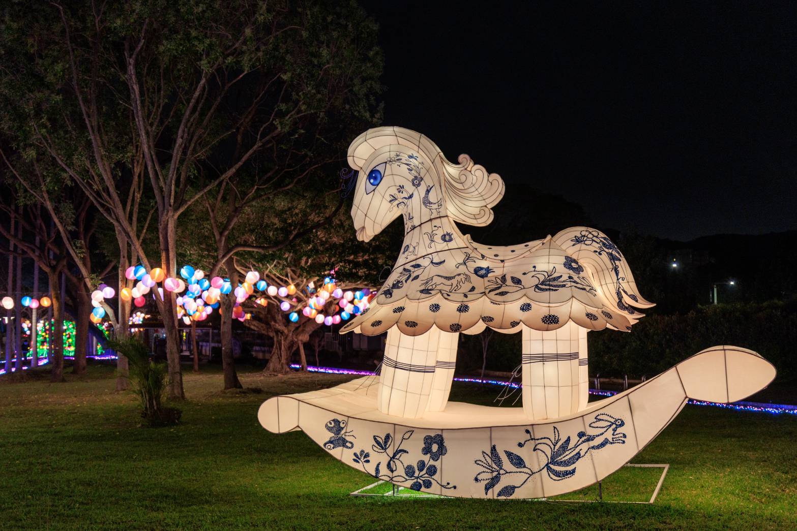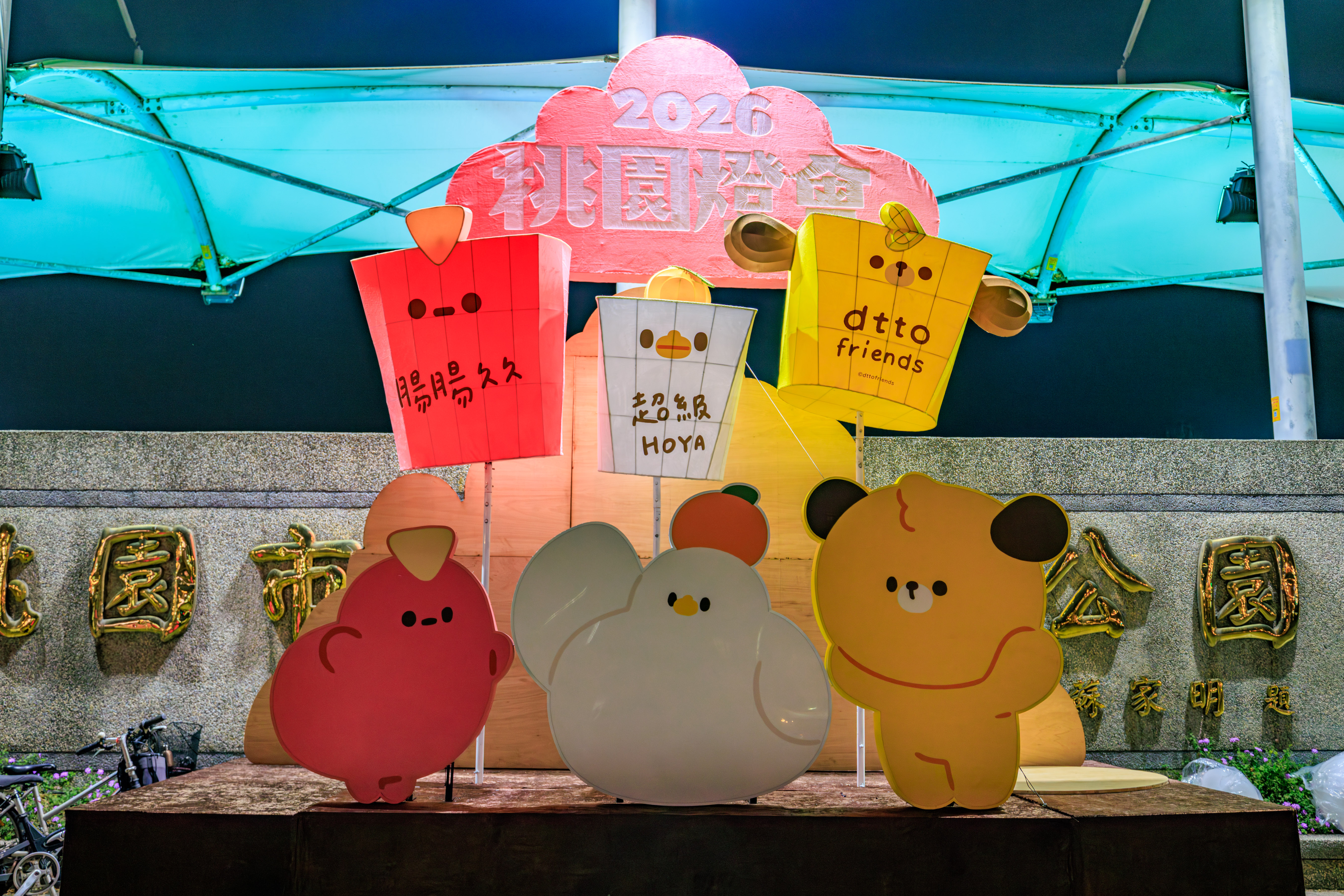 三民運動公園則走童趣路線,與人氣療癒IP「dtto friends」跨界合作,將 Hoya 好鴨、Saugy 腸太郎等角色轉化為大型氣偶與主題花燈,規劃「馬年元宵」、「星光祈願」與「故事新啟程」三大主題燈區,營造充滿童趣與療癒氛圍的光影空間,讓民眾在賞燈同時留下溫暖難忘的節慶回憶。農業局特別打造的「馬力食足」燈組同樣吸睛,近距離展現農藝美學與永續精神,以勤勉的馬兒結合桃園在地農特產意象,傳遞「馬到成功、食在滿足」的豐收喜悅。
