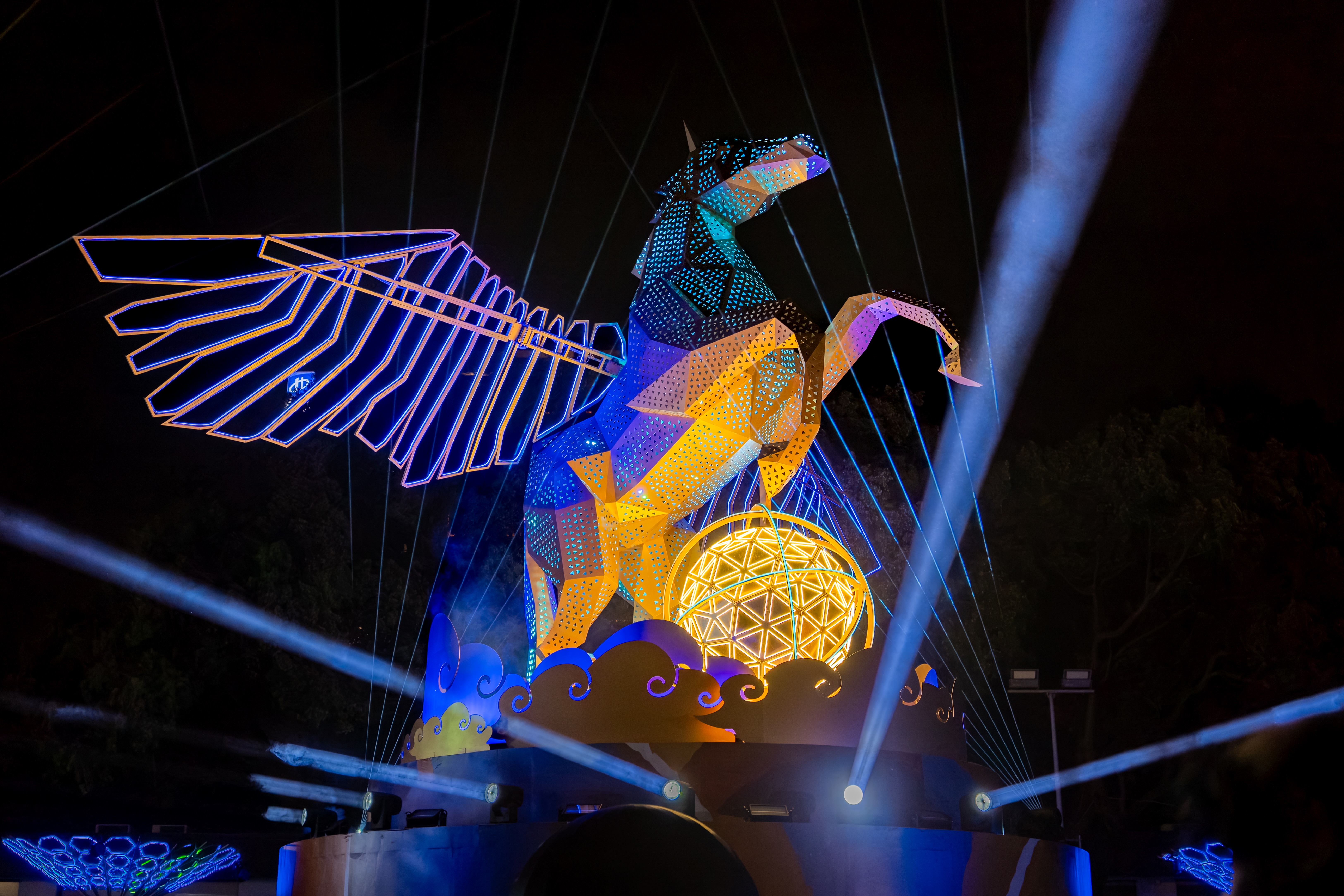 觀旅局表示,本次燈會自2月25日至3月8日止,為期12天,打造全台最大金屬機械飛馬主燈,結合機械動力、AI語音轉譯與AR抽籤等互動科技,展現桃園「國門之都」的創新能量。燈區橫跨虎頭山創新園區、南崁溪水岸及三民運動公園,串聯「未來光域」、「森韻流域」與高人氣「dtto friends樂園」,融合科技藝術、生態永續與親子元素,打造精彩光影盛典。